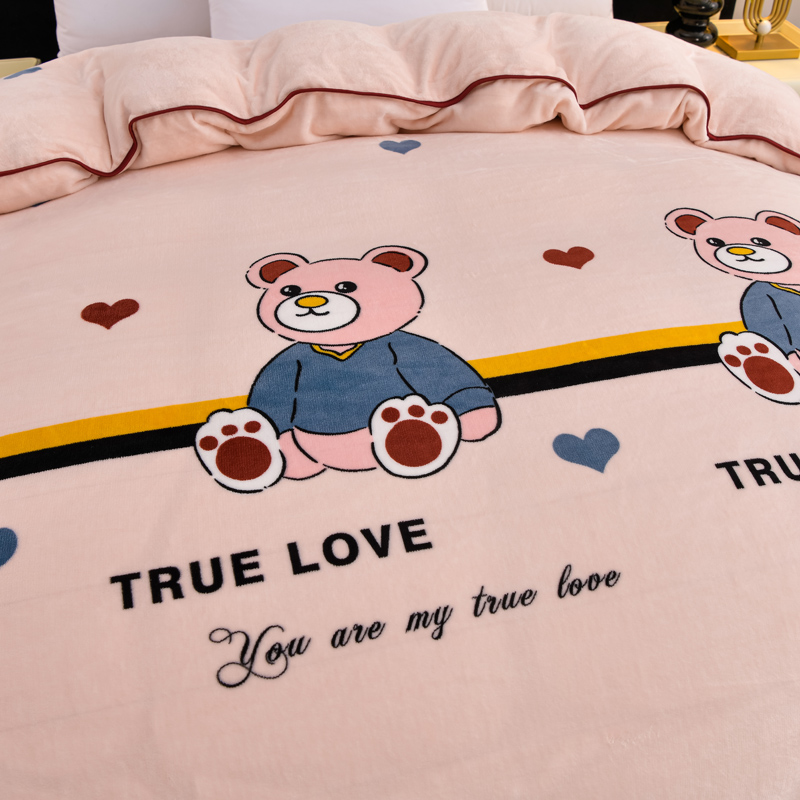 慕婷家纺 2024新款牛奶绒印花床裙系列-单被套可爱小熊
