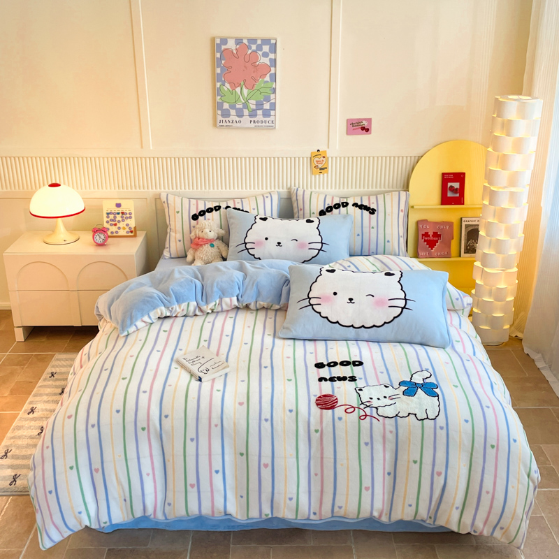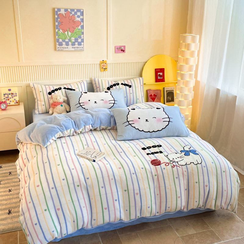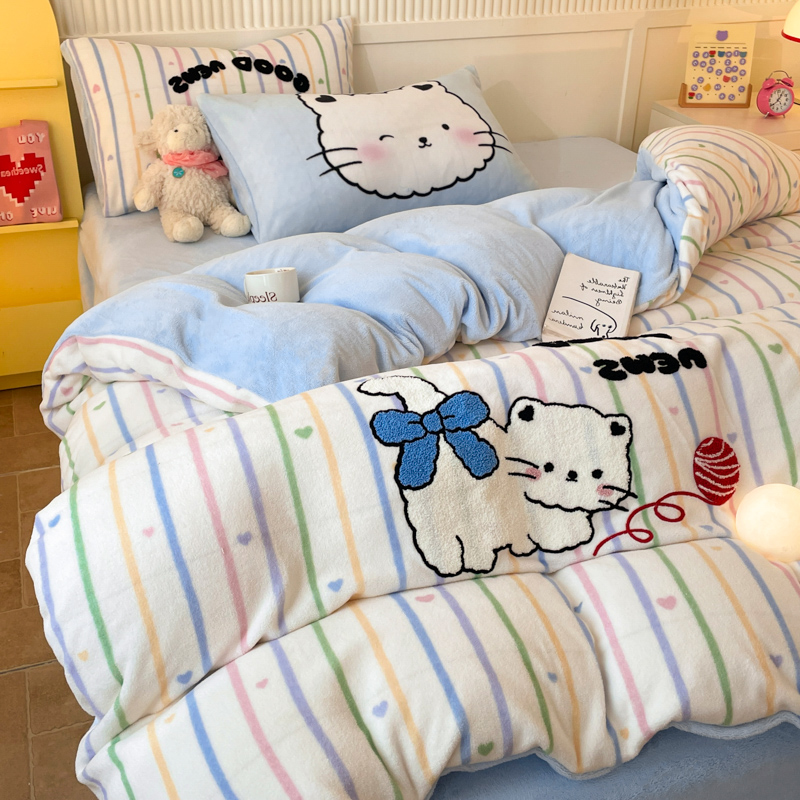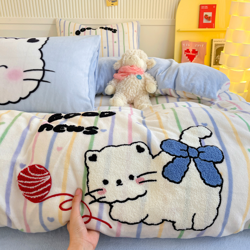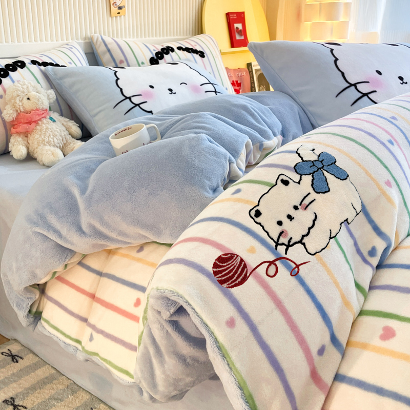 呗旺鹿 2024新款高克重卡通印花牛奶绒四件套毛巾绣牛奶绒四件套 毛线贝丽
