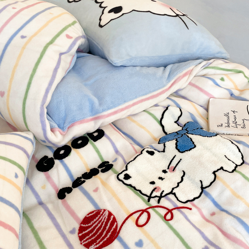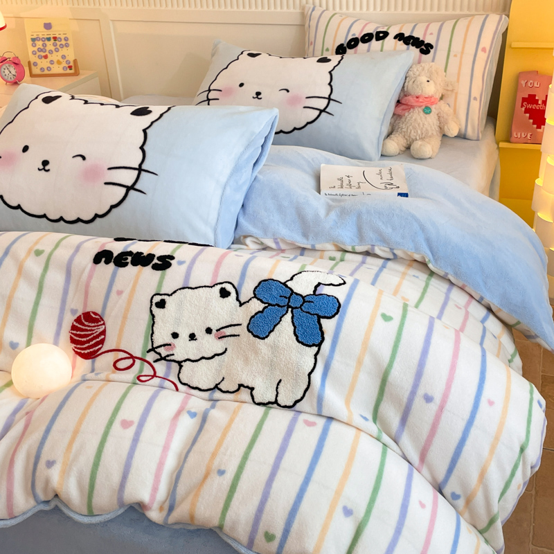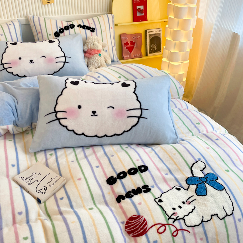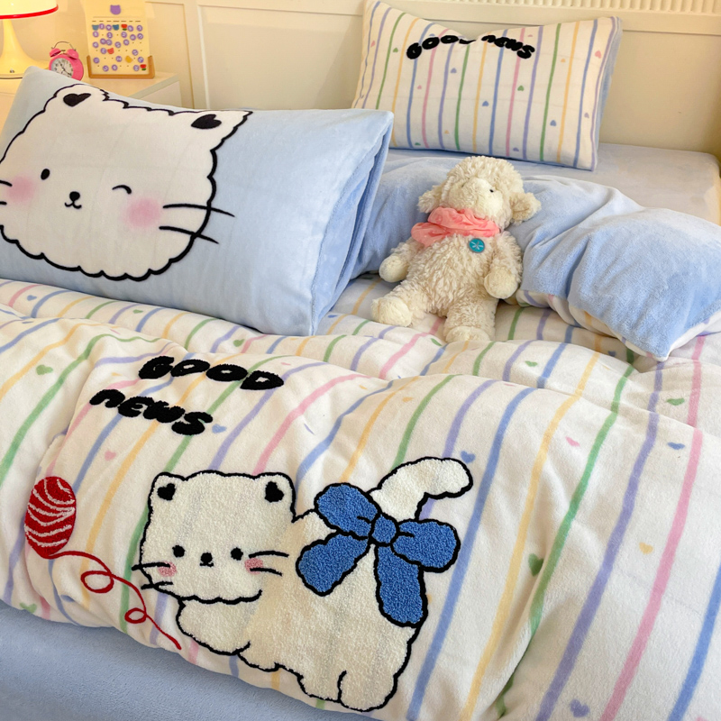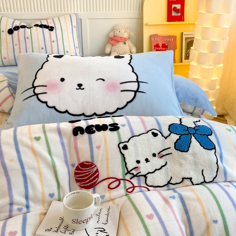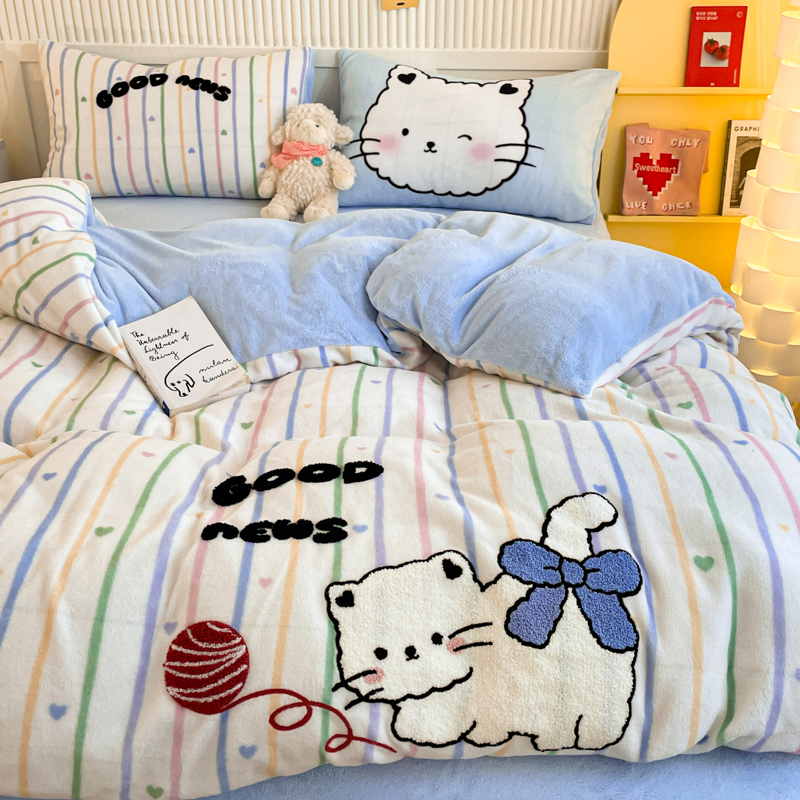 呗旺鹿 2024新款高克重卡通印花牛奶绒四件套毛巾绣牛奶绒四件套 毛线贝丽