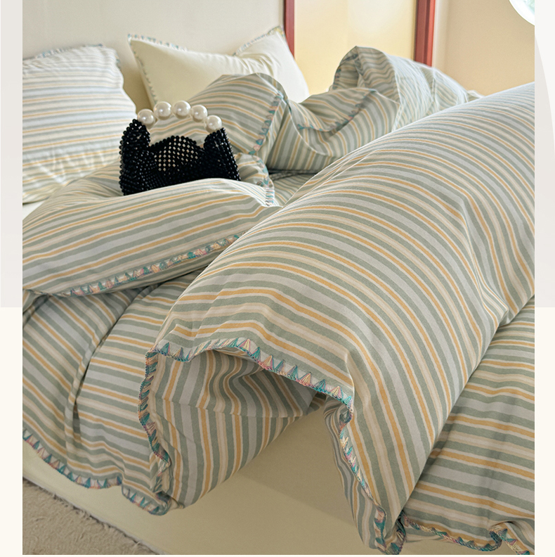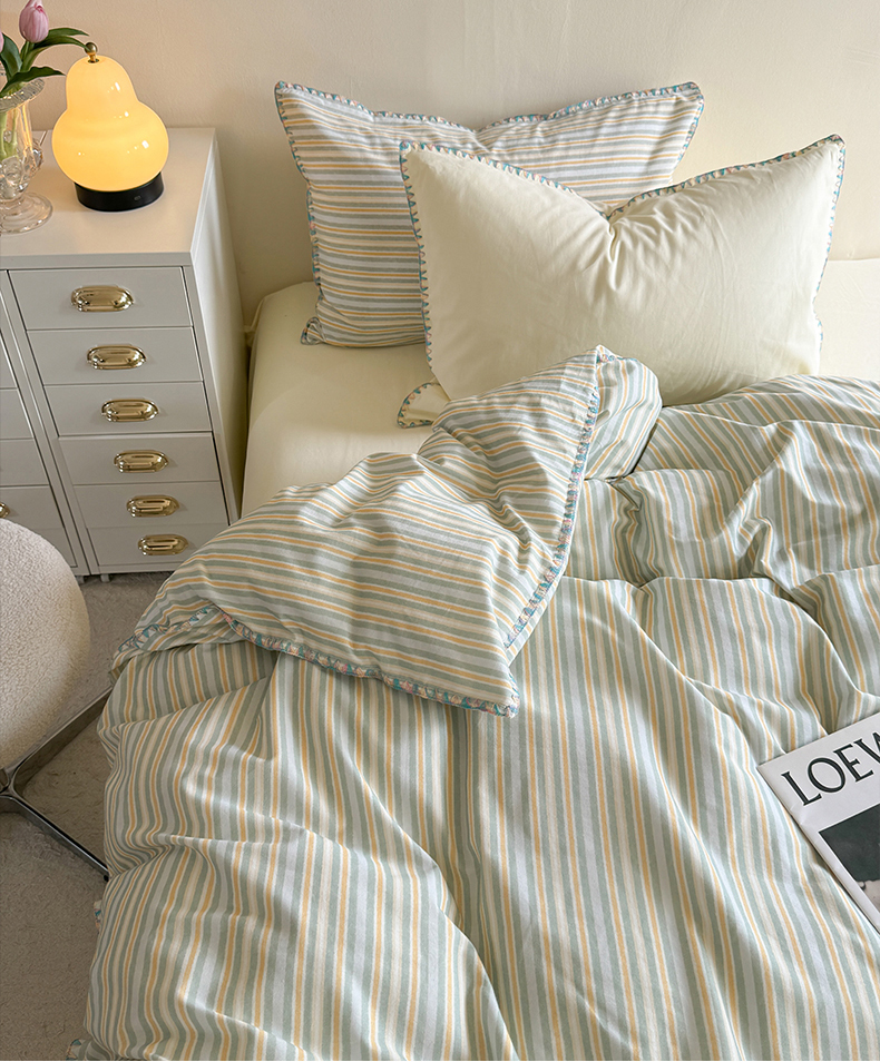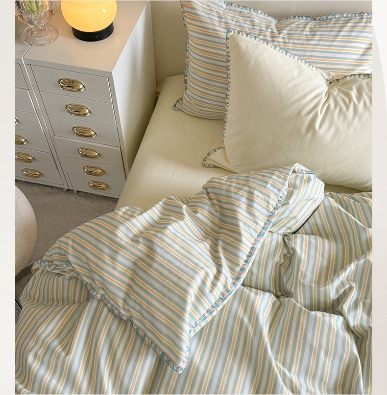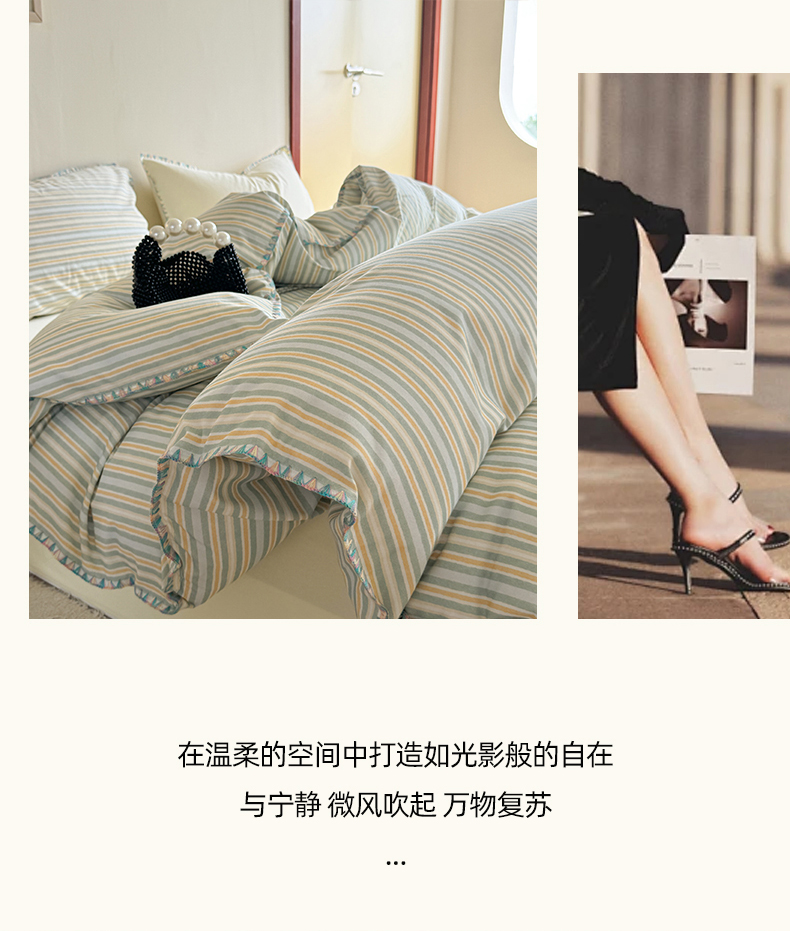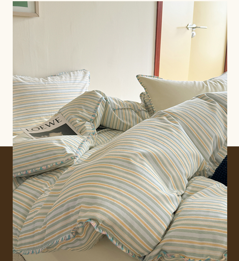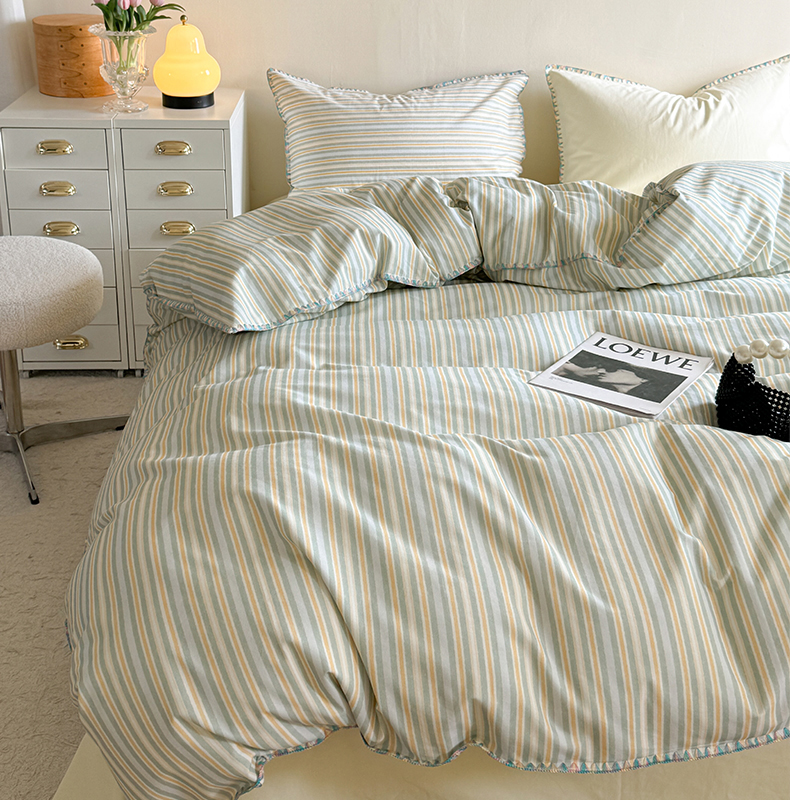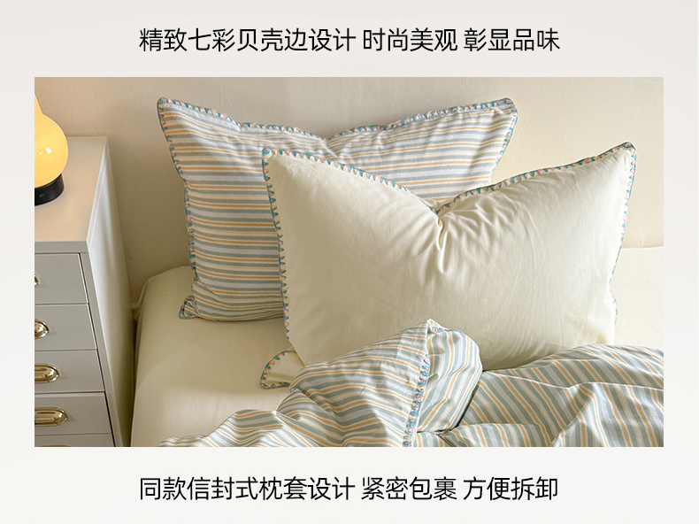 当前位置: 91家纺网 > 商品网购 > 床品套件 > 四件套 > 全棉普通四件套 > 艾莱家纺 2024新款七彩贝壳系列100S全棉柔顺加厚磨毛四件套 幻珊-黄细条