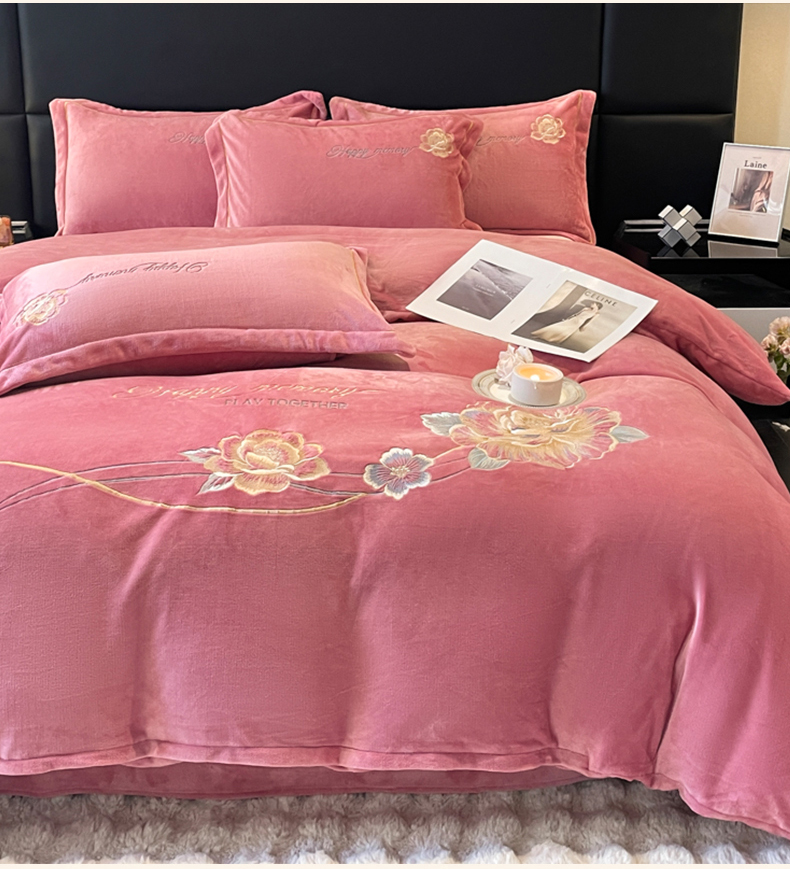 商品名称:畅畅家纺 2024秋冬新款牛奶绒绣花四件套 芳华-伊莉莎系列 芳华-豆沙