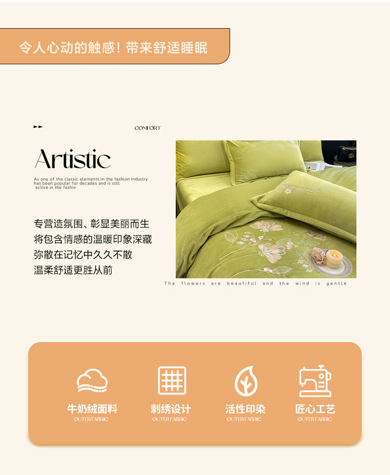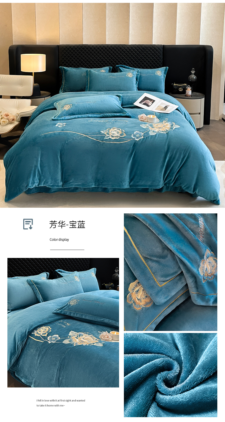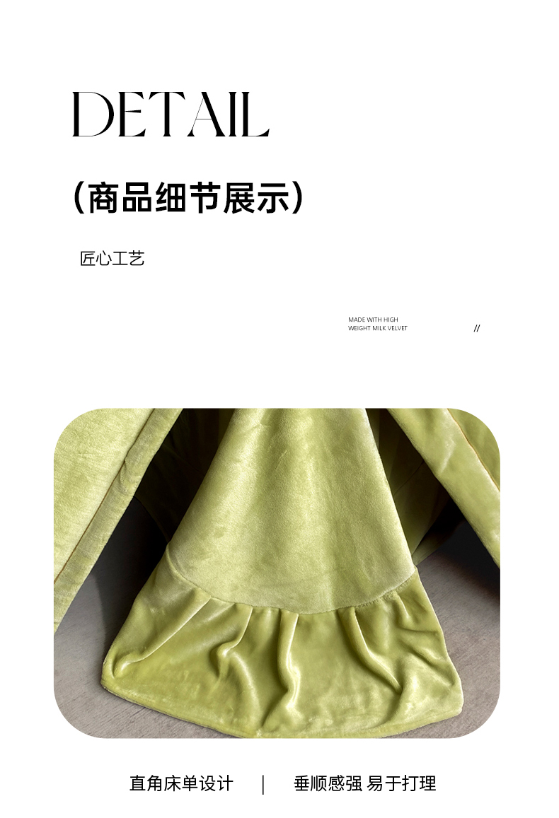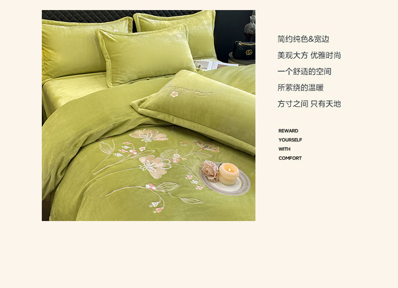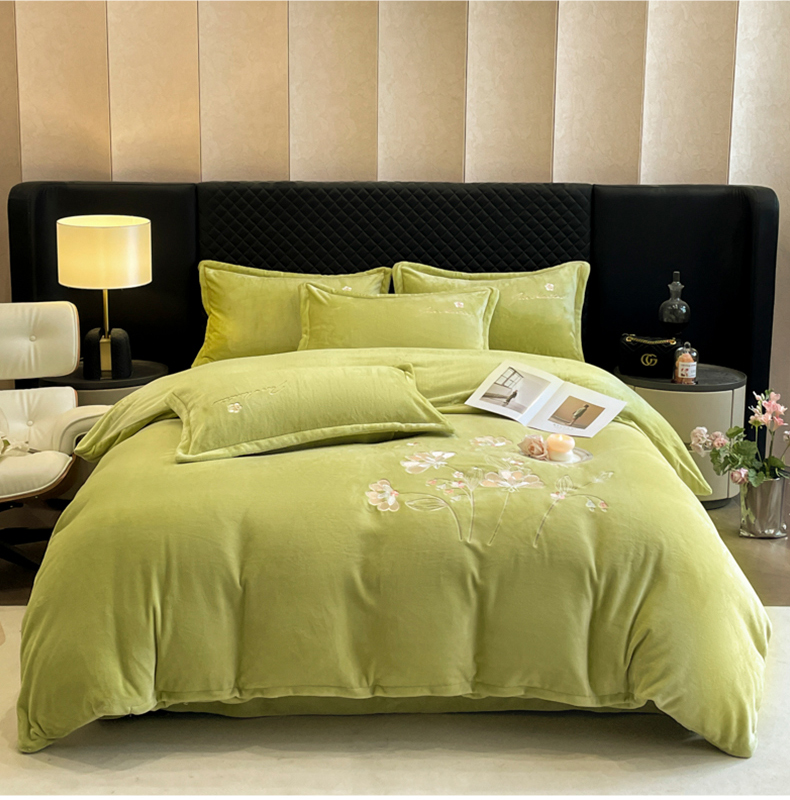 商品名称:畅畅家纺 2024秋冬新款牛奶绒绣花四件套 芳华-伊莉莎系列 伊莉莎-抹茶绿