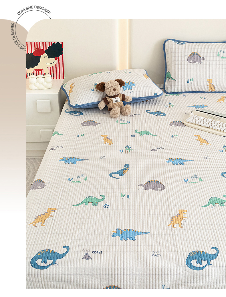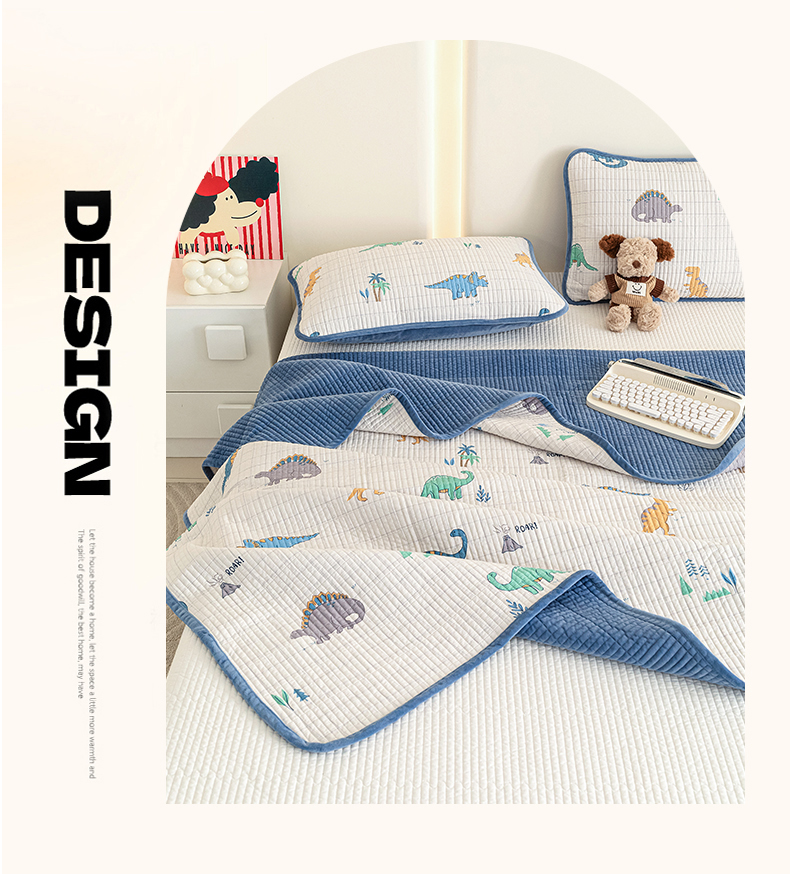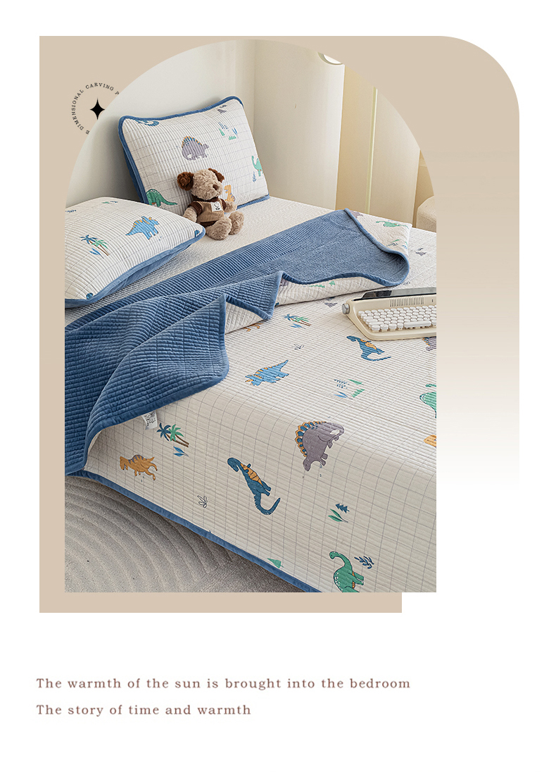 茉夕 2024跑量款暖绒纯棉印花水洗床盖 暖绒-恐龙乐园