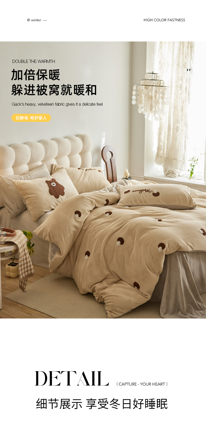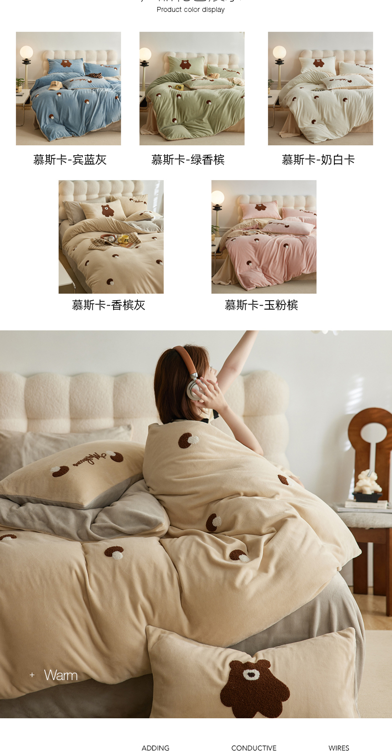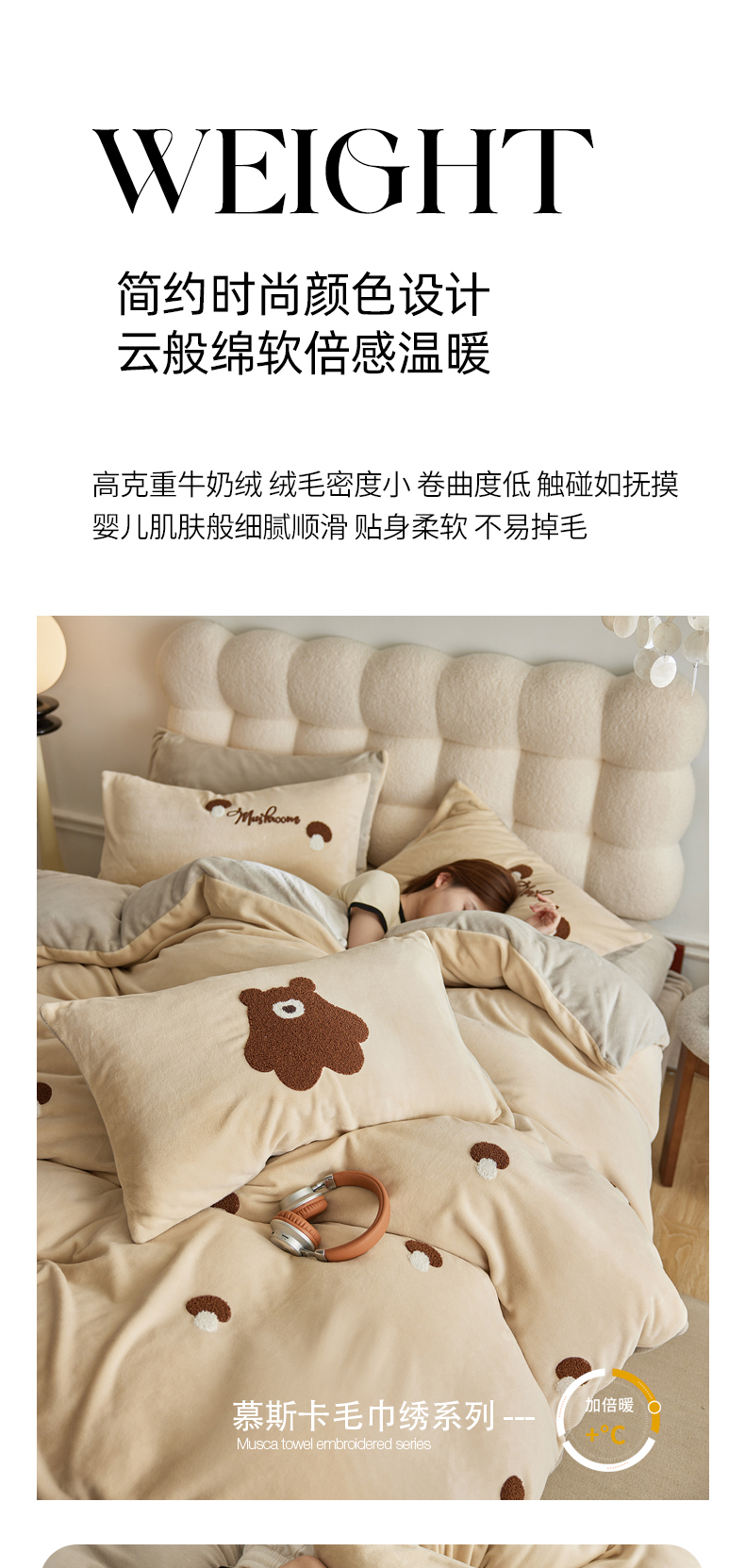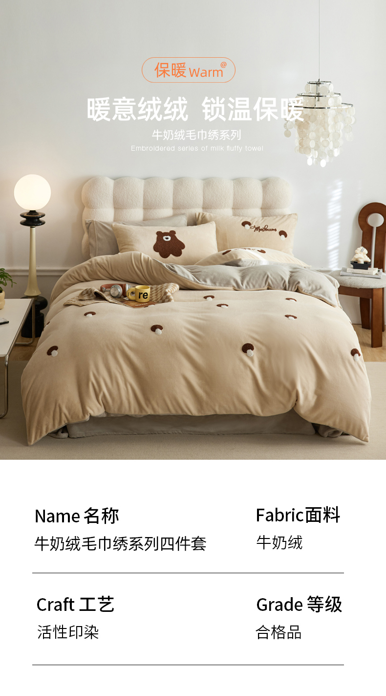 千朵森 2024新款毛巾绣牛奶绒四件套-慕斯卡 风格一 慕斯卡-香槟灰