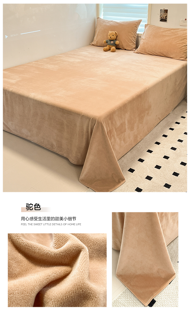商品名称:盛馨家纺 2024新款高克重加厚保暖纯色宝宝绒系列单床单 驼色