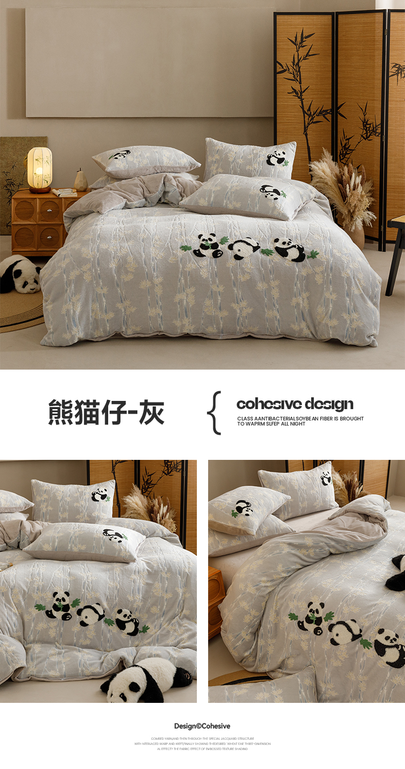 商品名称:蜜柚 2024新款230克全消光色烂牛奶绒毛巾绣四件套 熊猫仔-灰
