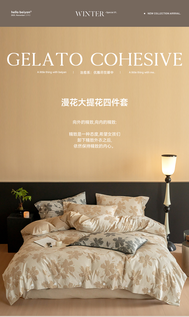 华超针织 2024新款漫花空气感双层提花四件套 漫花卡其