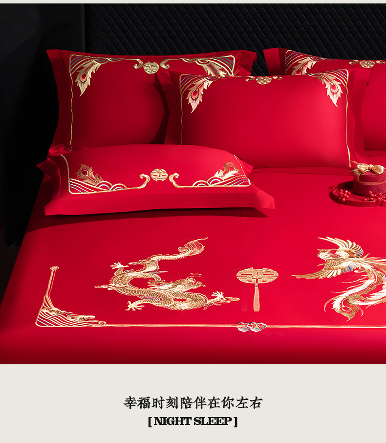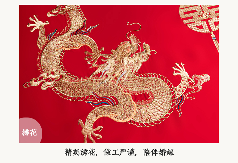 商品名称:千禧家纺 2024新款长绒棉绣花婚庆三件套 龙跃凤鸣