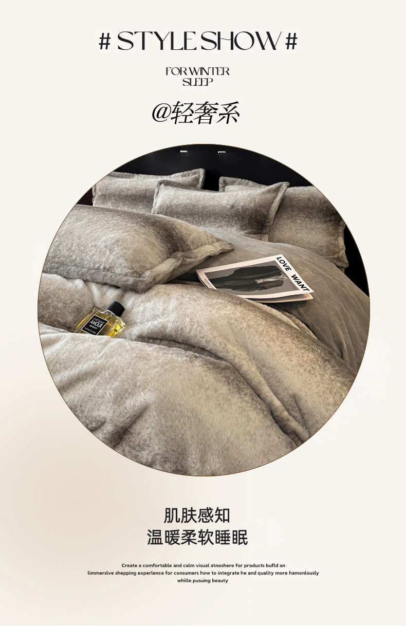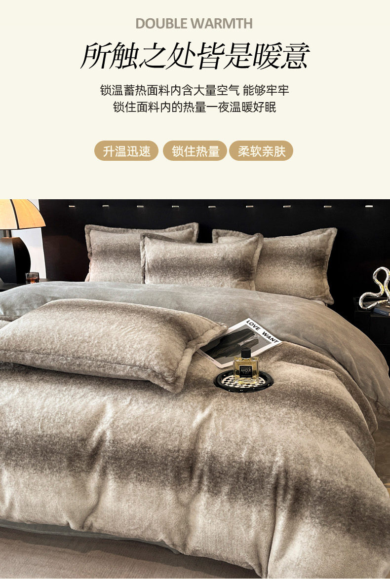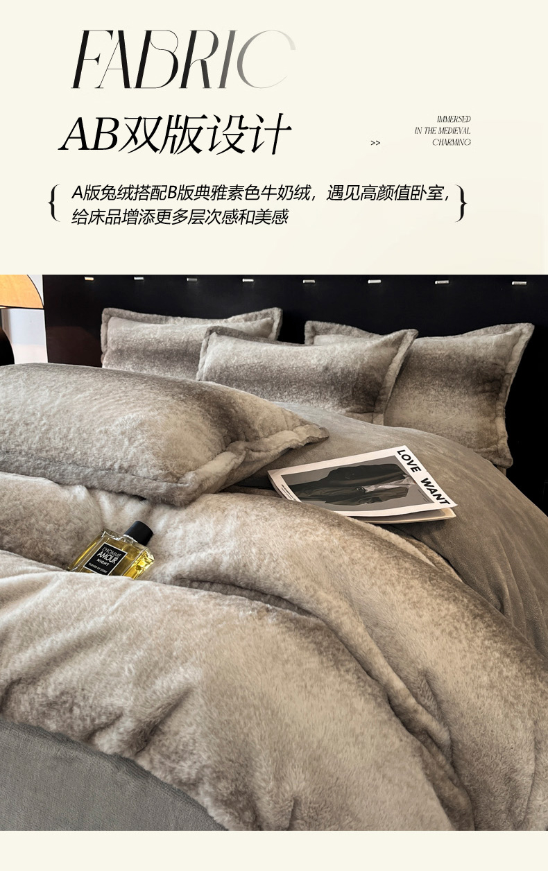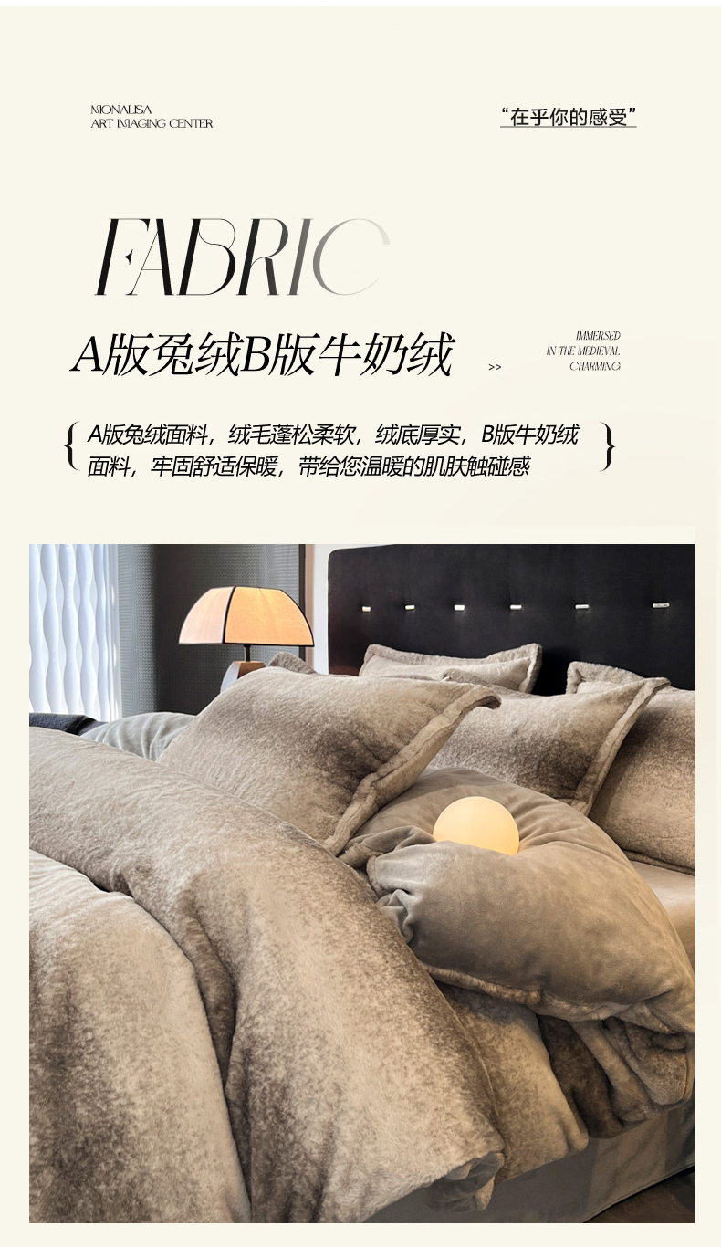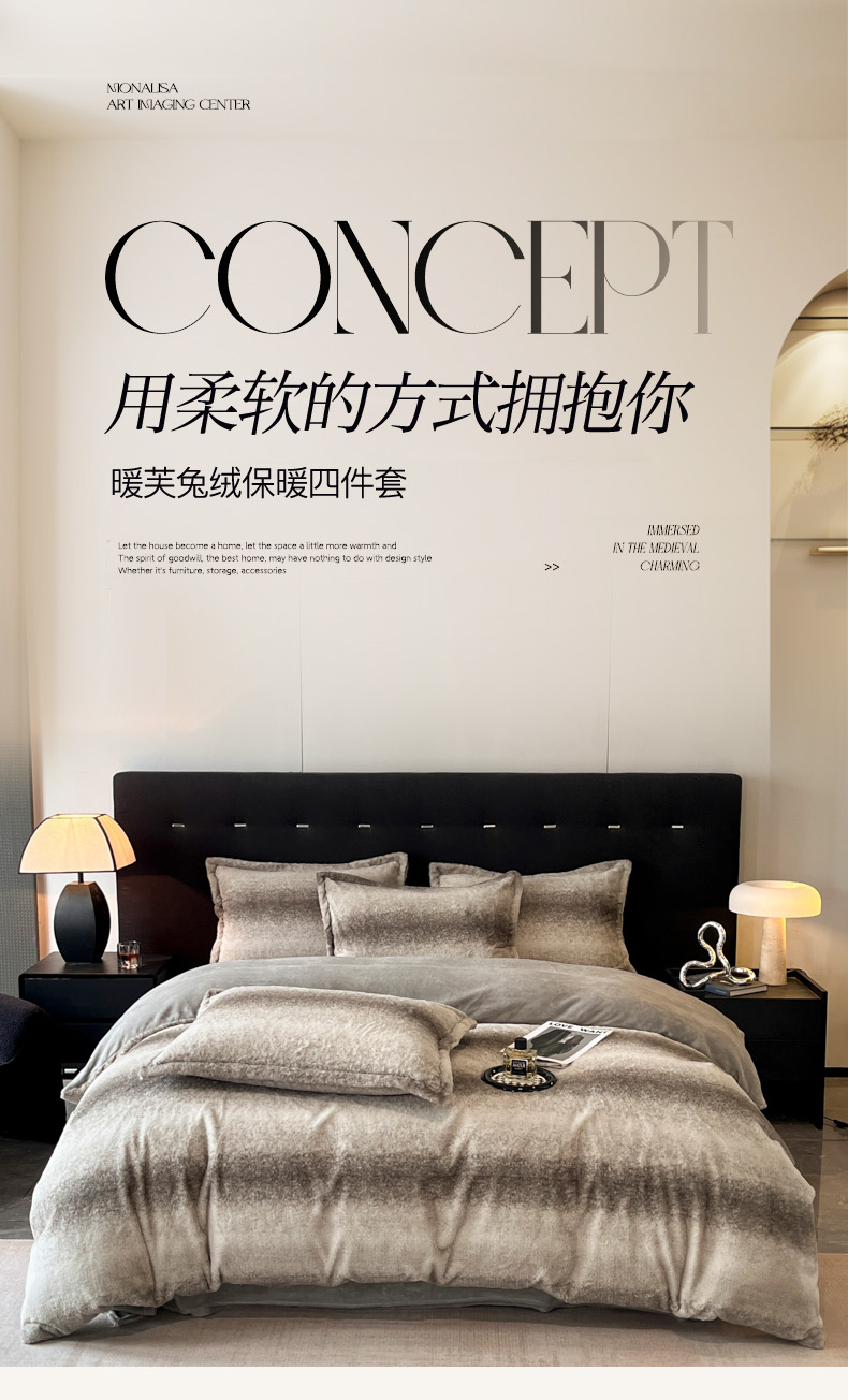 当前位置: 91家纺网 > 商品网购 > 床品套件 > 四件套 > 兔毛绒四件套 > 慕尚家纺 2025新款高端亲肤舒适暖芙兔毛四件套 暖芙-灰棕