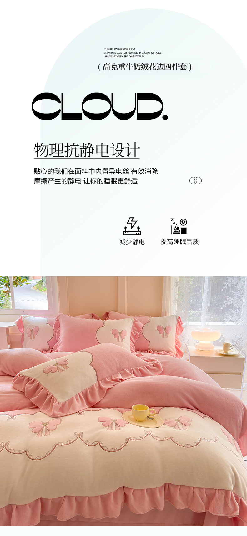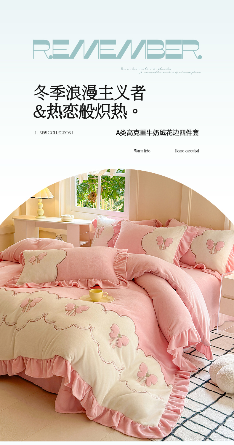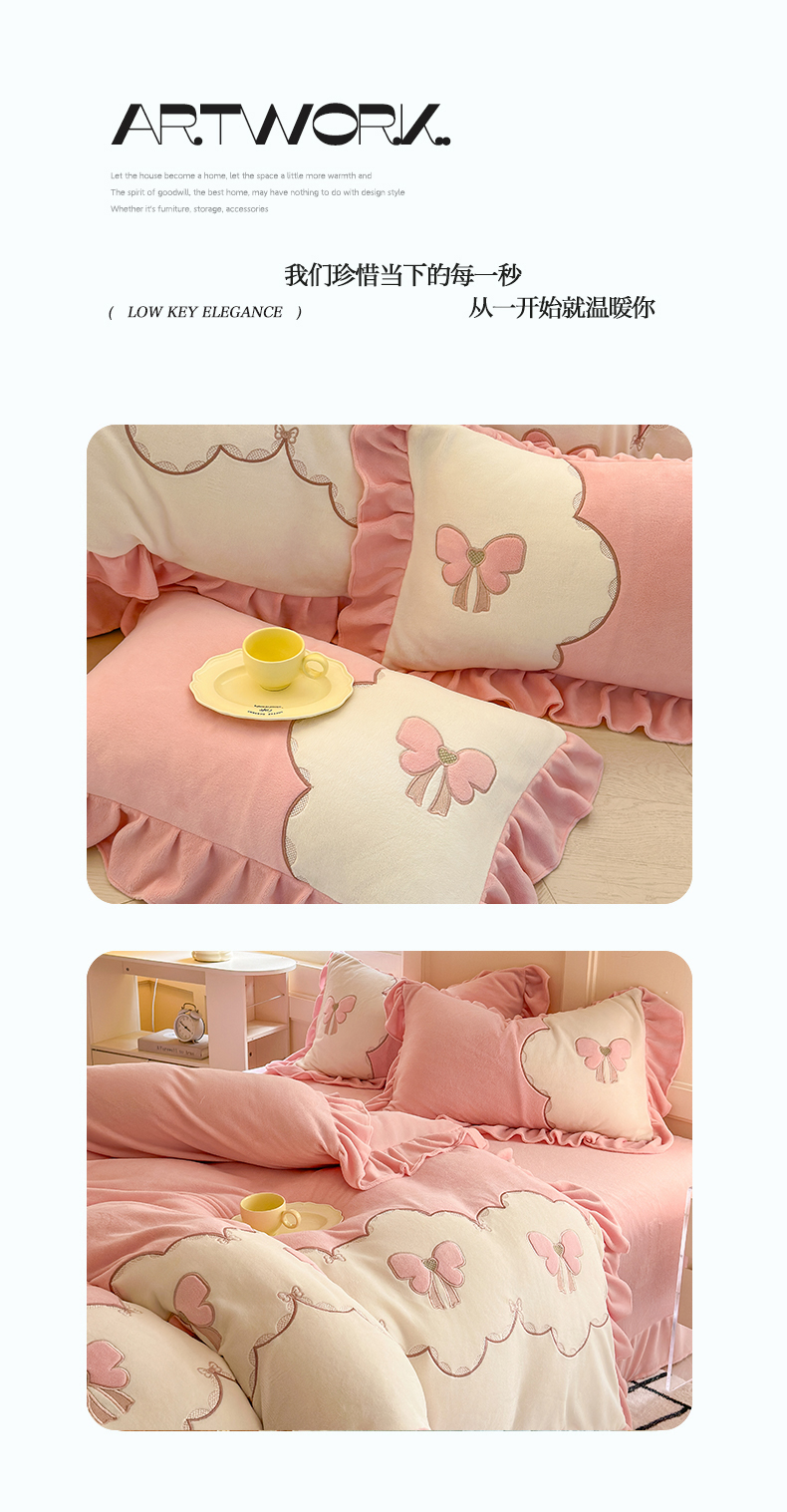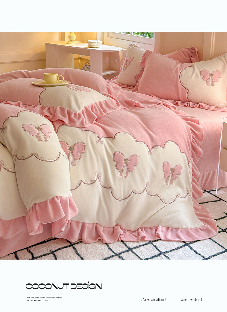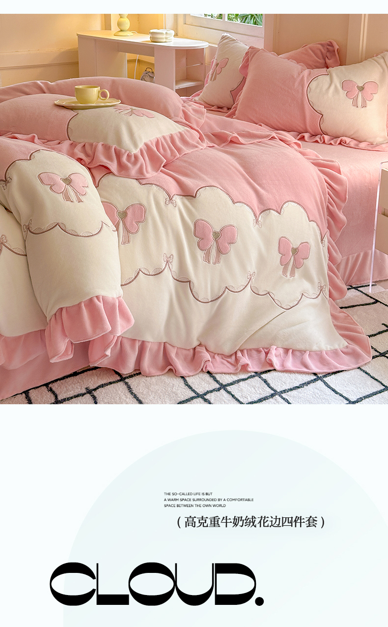 当前位置: 91家纺网 > 商品网购 > 床品套件 > 四件套 > 牛奶绒四件套 > 豪美鑫 2025新款牛奶绒刺绣韩版花边四件套-蝴蝶仙子 蝴蝶仙子-淡粉