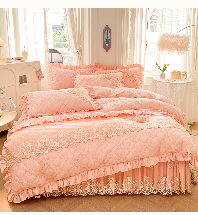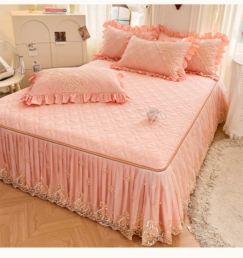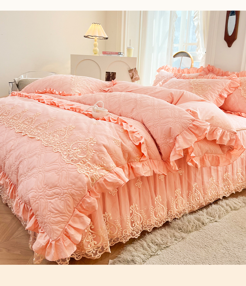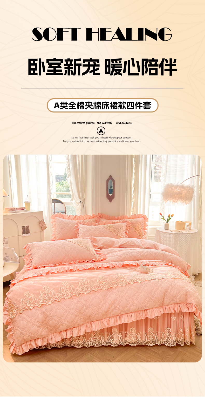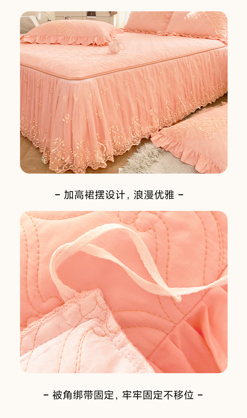 当前位置: 91家纺网 > 商品网购 > 床品套件 > 四件套 > 全棉普通四件套 > 罗艺轩 2024新款公主风全棉加厚可脱卸床笠式床裙四件套 慕雅-柔粉
