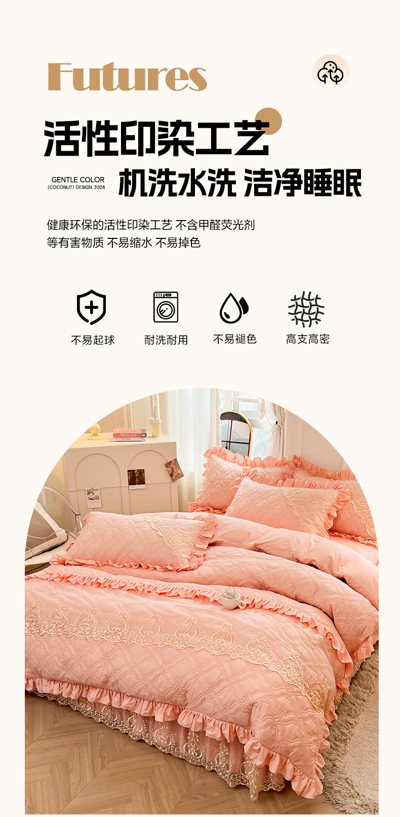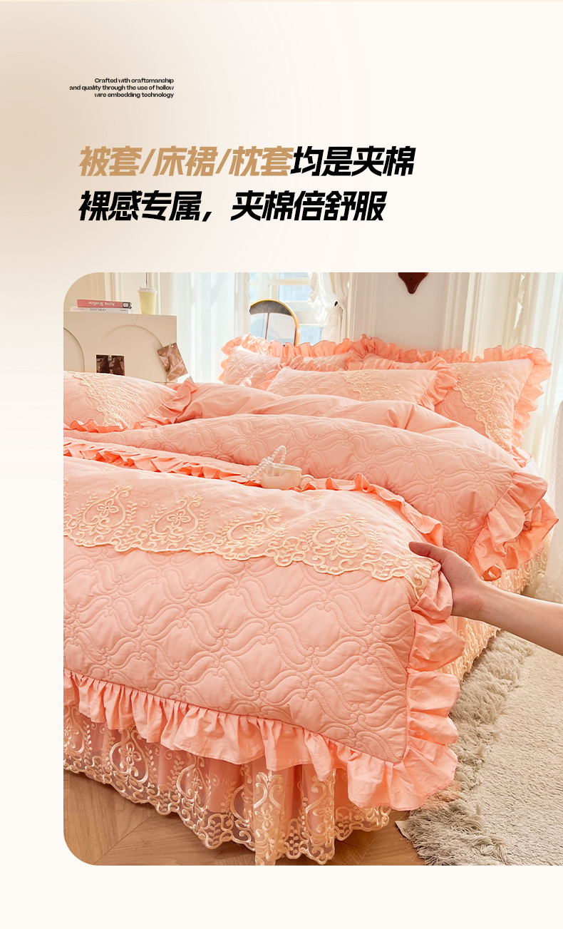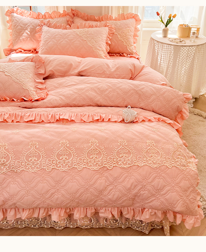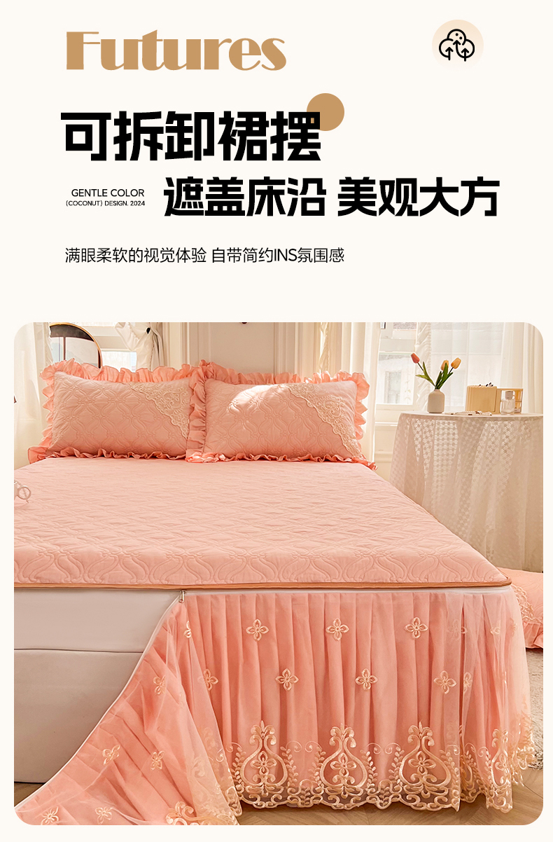当前位置: 91家纺网 > 商品网购 > 床品套件 > 四件套 > 全棉普通四件套 > 罗艺轩 2024新款公主风全棉加厚可脱卸床笠式床裙四件套 慕雅-柔粉