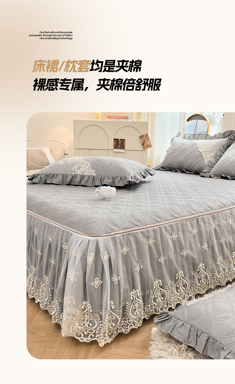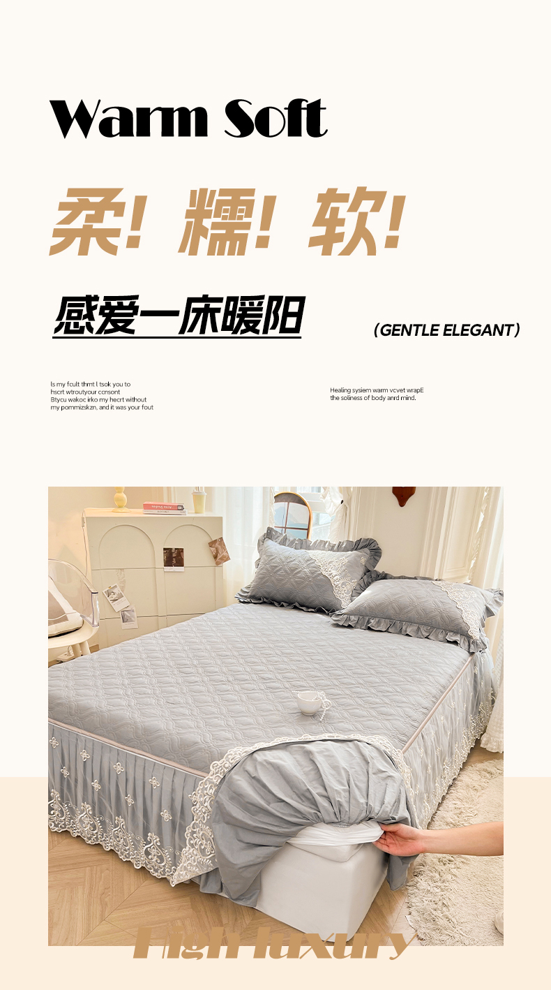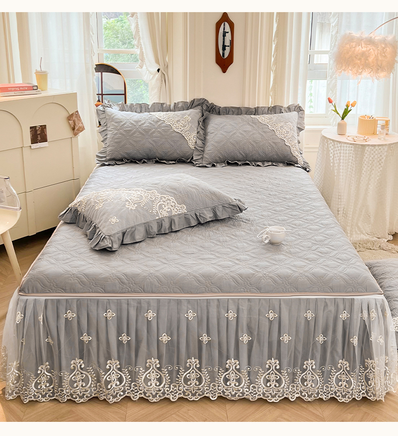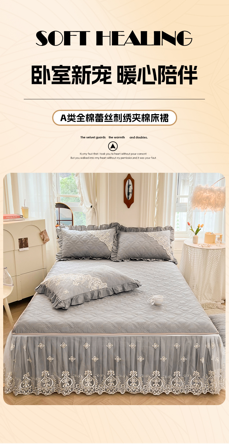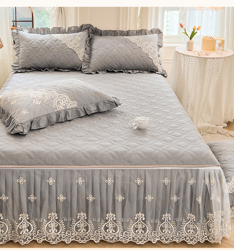 当前位置: 91家纺网 > 商品网购 > 床品套件 > 三件套 > 罗艺轩 2024新款公主风全棉加厚可脱卸床笠式床裙三件套 慕雅-高级灰