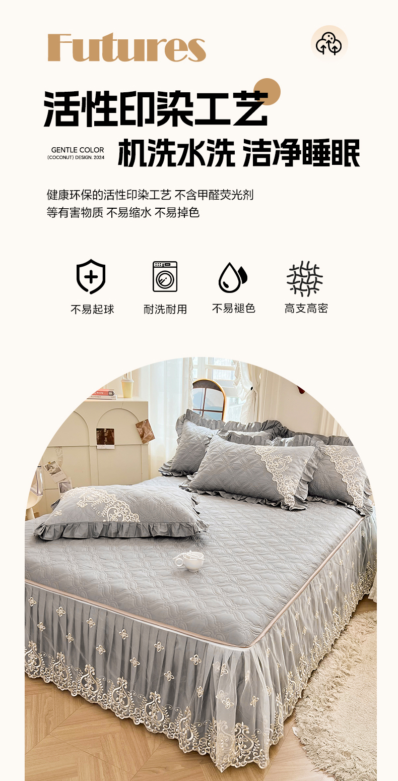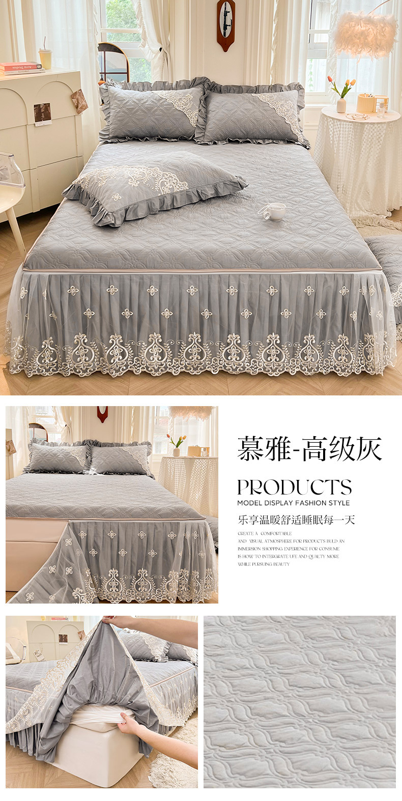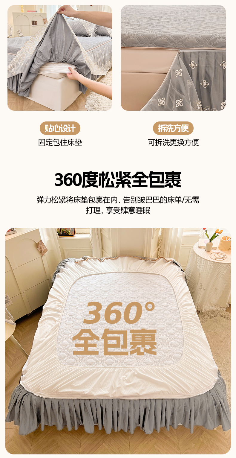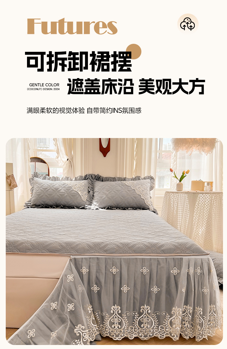当前位置: 91家纺网 > 商品网购 > 床品套件 > 三件套 > 罗艺轩 2024新款公主风全棉加厚可脱卸床笠式床裙三件套 慕雅-高级灰