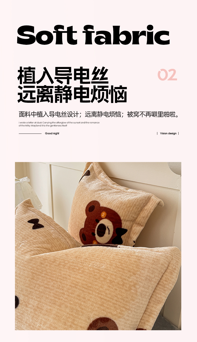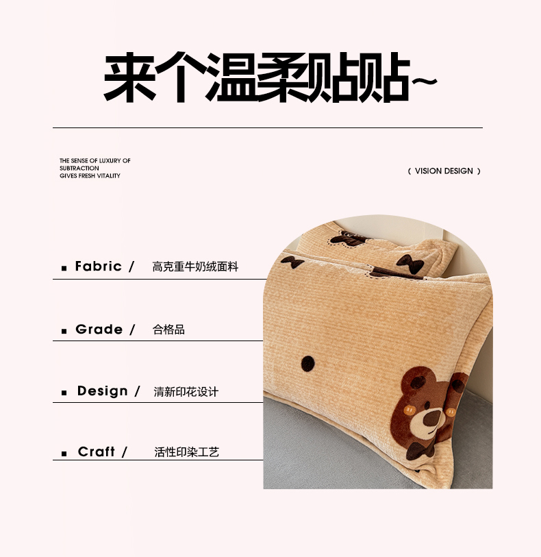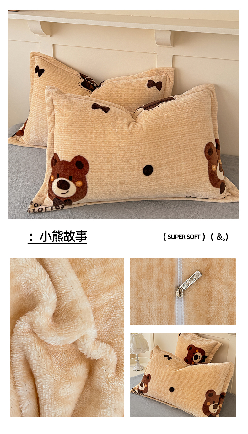 商品名称:妖妖家纺 2024新款200克牛奶绒单枕套 小熊故事