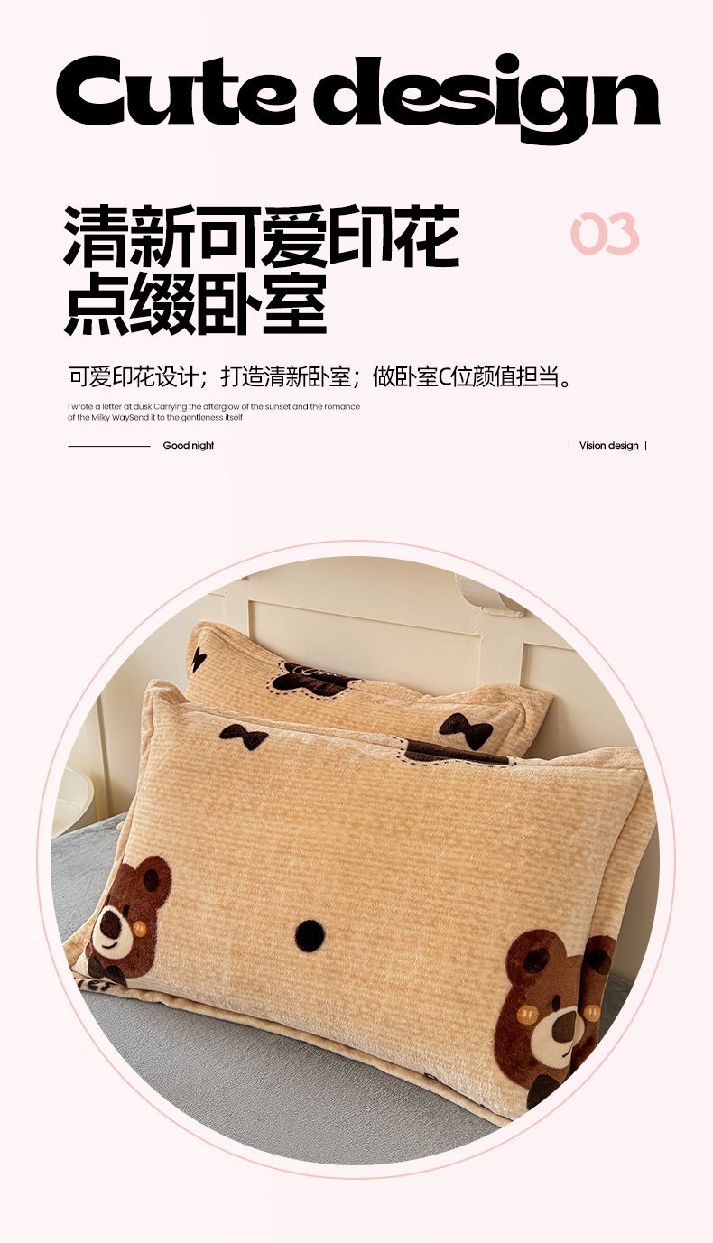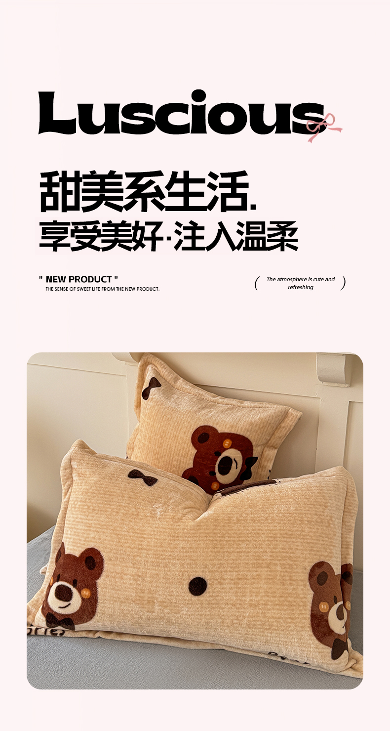 妖妖家纺 2024新款200克牛奶绒单枕套 小熊故事