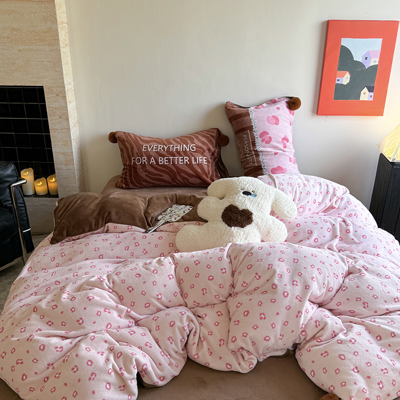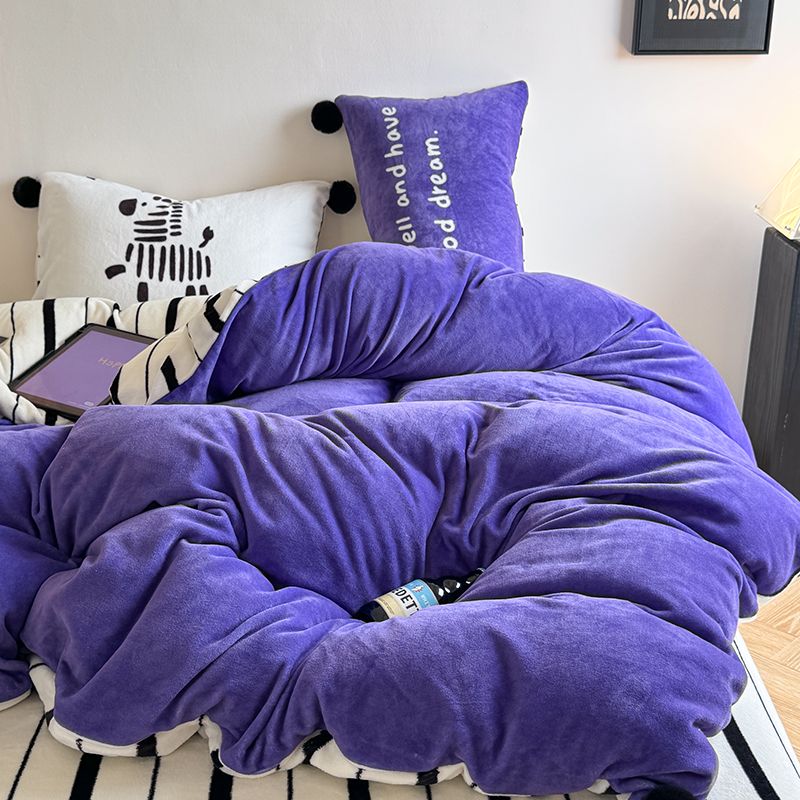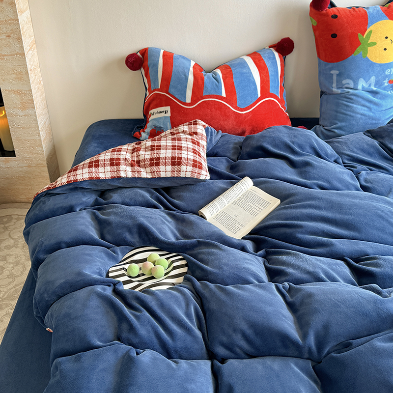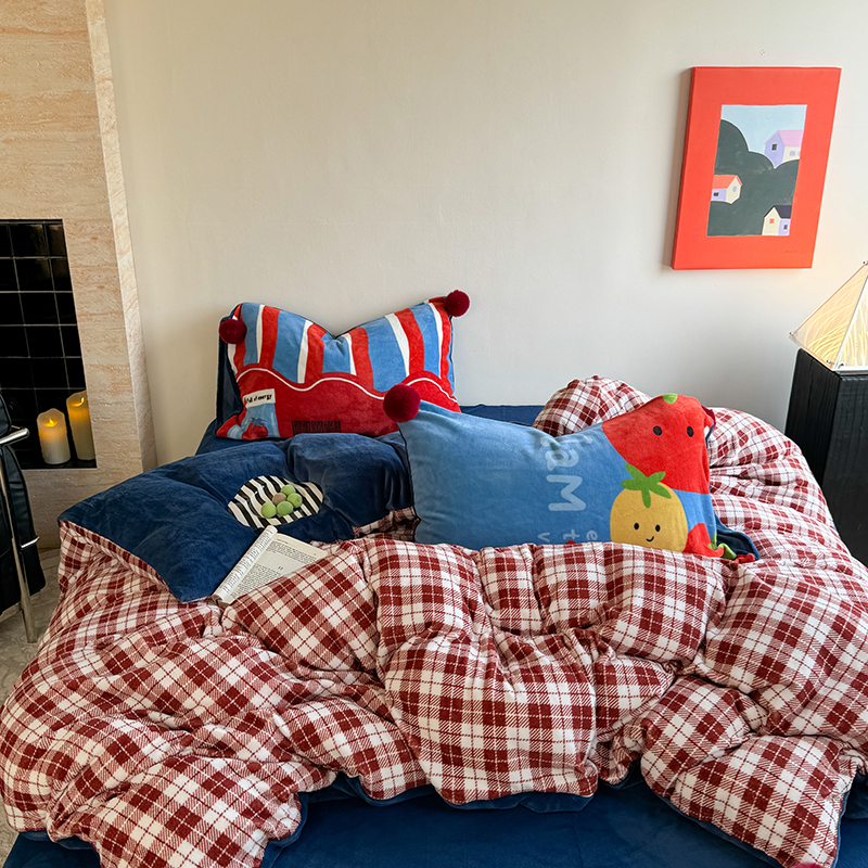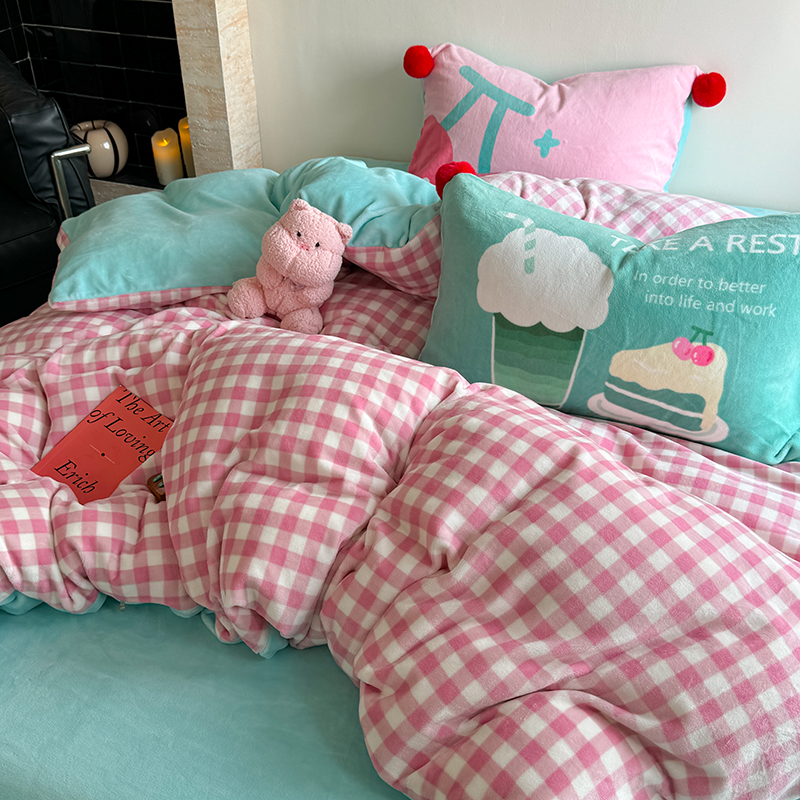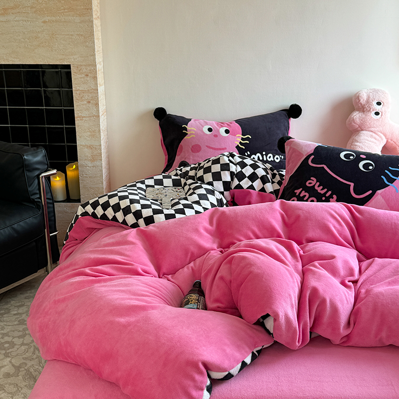 柚子YOUTH 2024新款加厚牛奶绒可脱卸毛球四件套-球球款 棋盘格