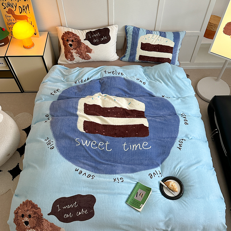 (总)桃喜 2025新款秋冬牛奶绒床笠三件套(会员-3),美拉德甜点,三个小伙伴,三只小猫,圣诞雪人,小猫的早八时刻,组合图