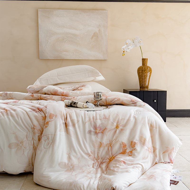 (总)丽卡家纺 2025新款繁花羊绒蚕丝子母被被子被芯,繁花羊绒蚕丝子母被-白色,繁花羊绒蚕丝子母被-卡其