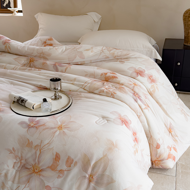 (总)丽卡家纺 2025新款小清新全棉纯棉夏被夏凉被空调被四件套,爱尔兰-粉,柏林花事-紫,落雁花影-白,觅事-绿,未央-绿,惜春-绿,香雪海-绿,约克-米金,月野-灰