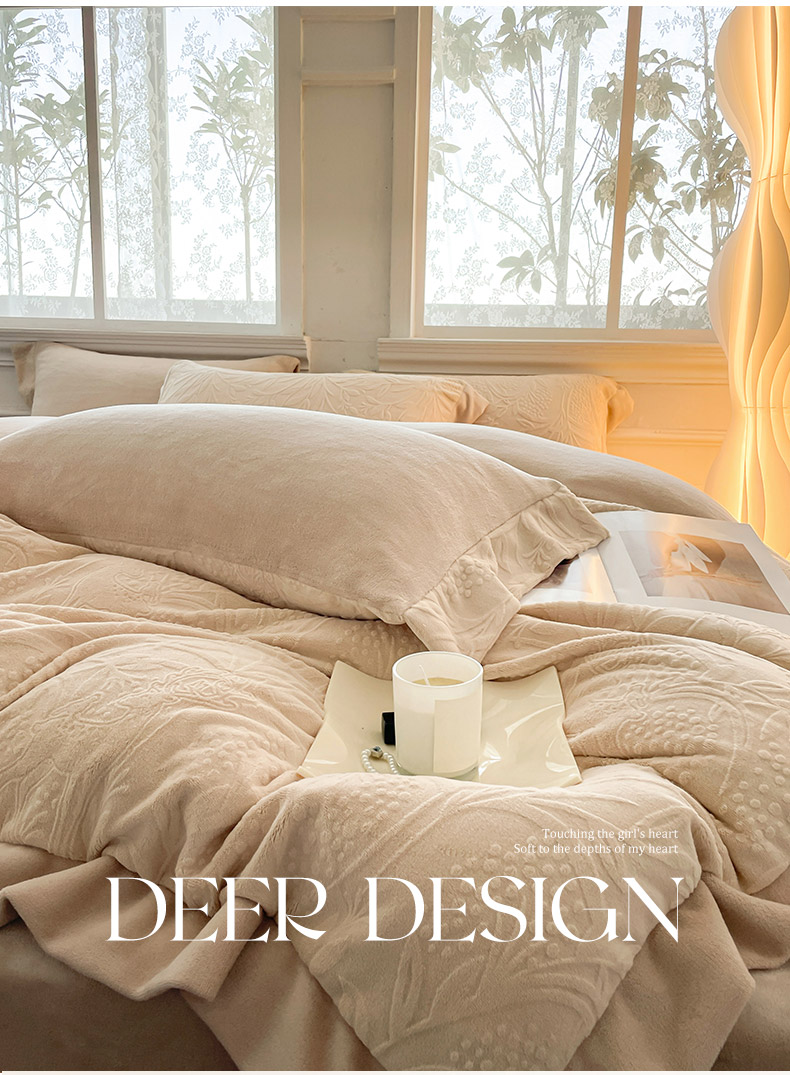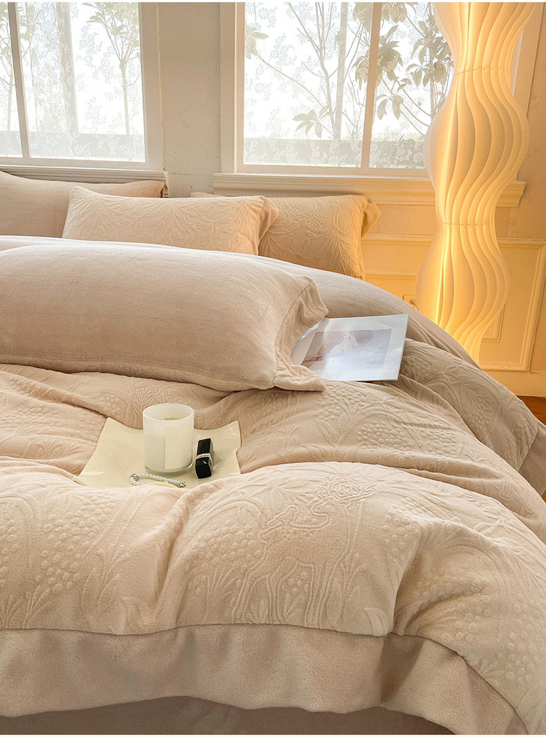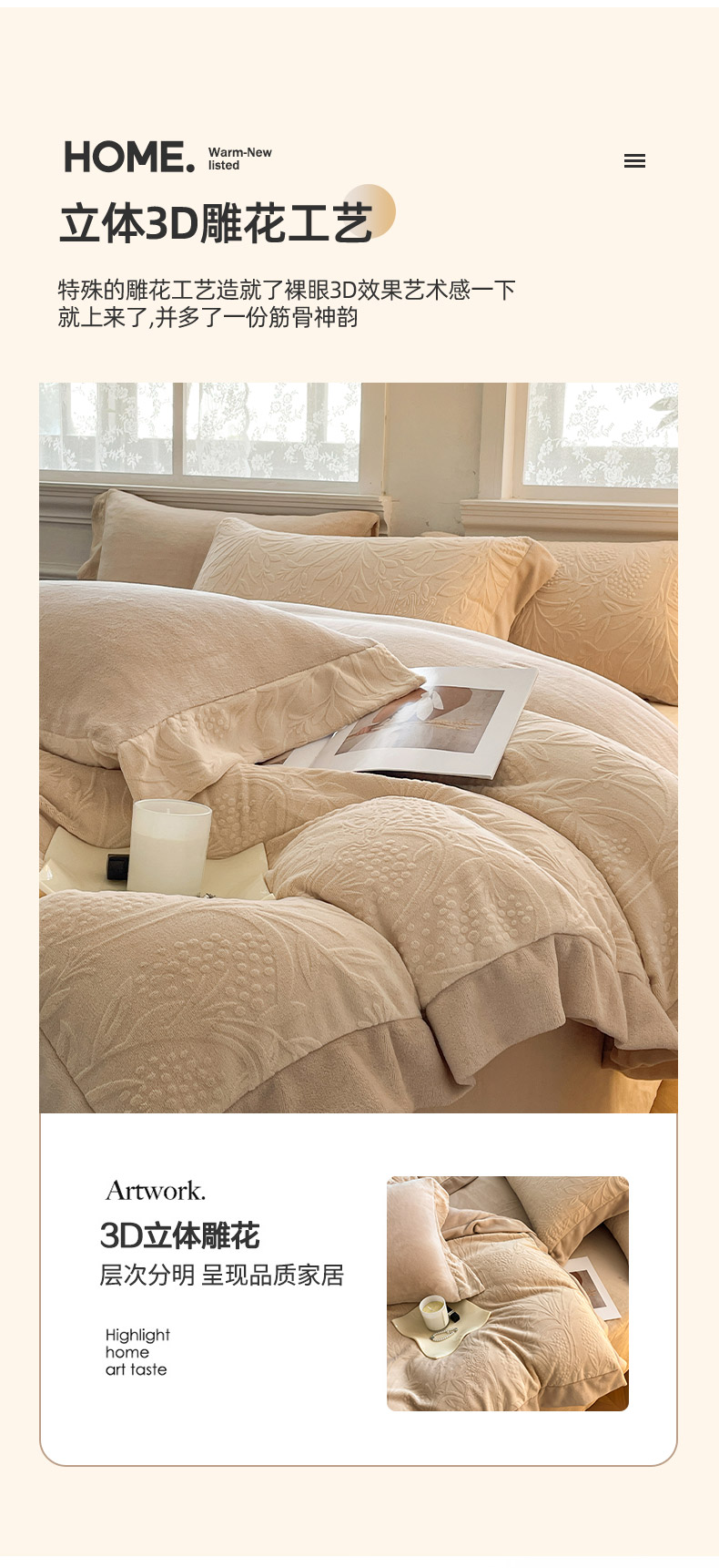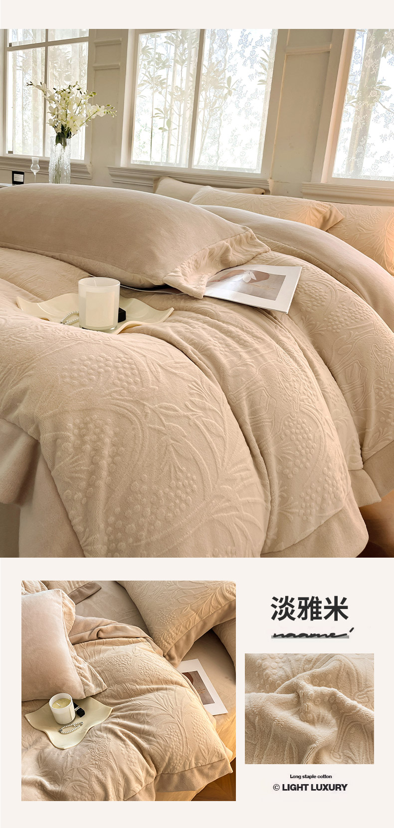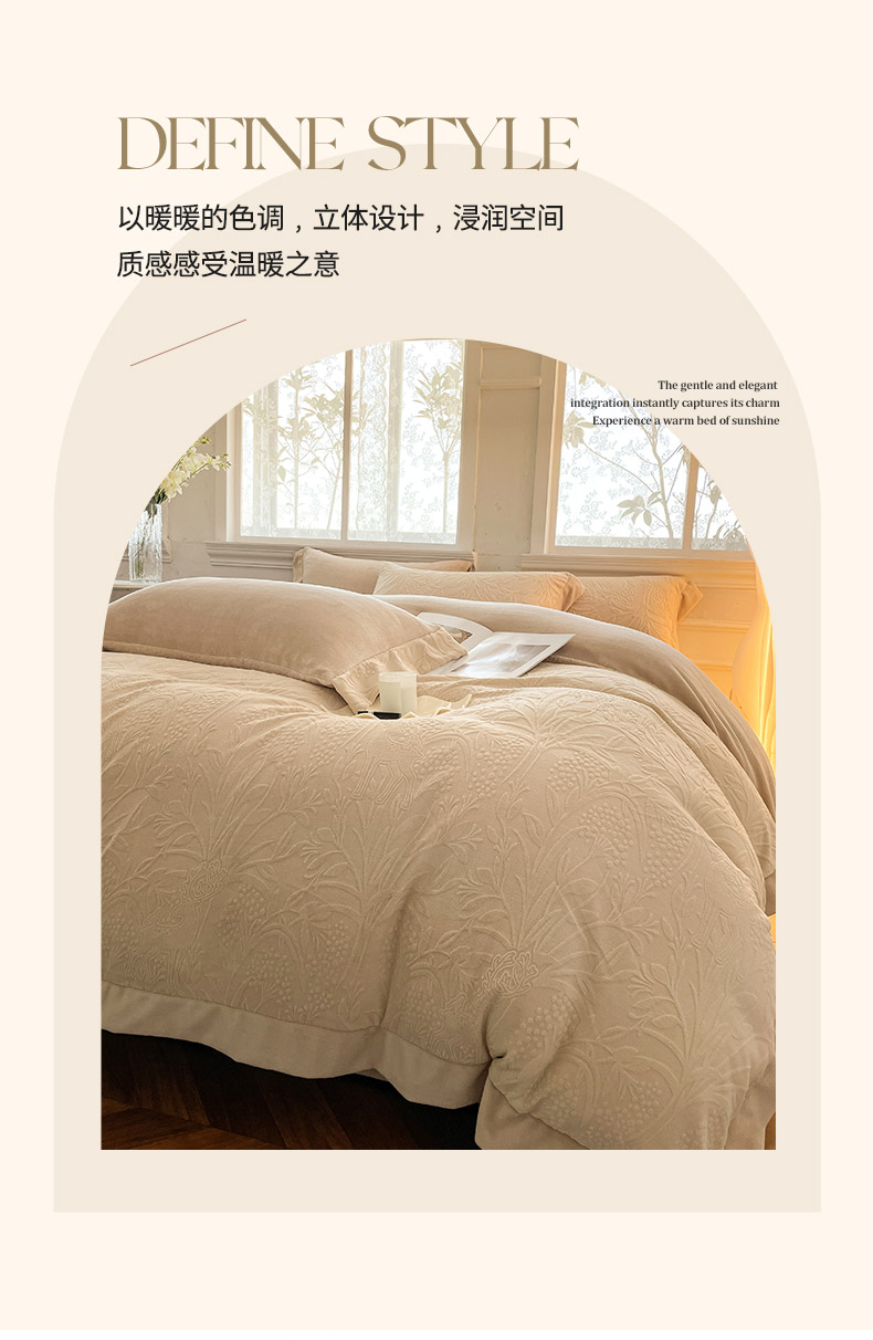 2024新款A类雕花绒牛奶绒四件套宝宝绒婴儿绒床单被套保暖套件新品-米鹿提 淡雅米