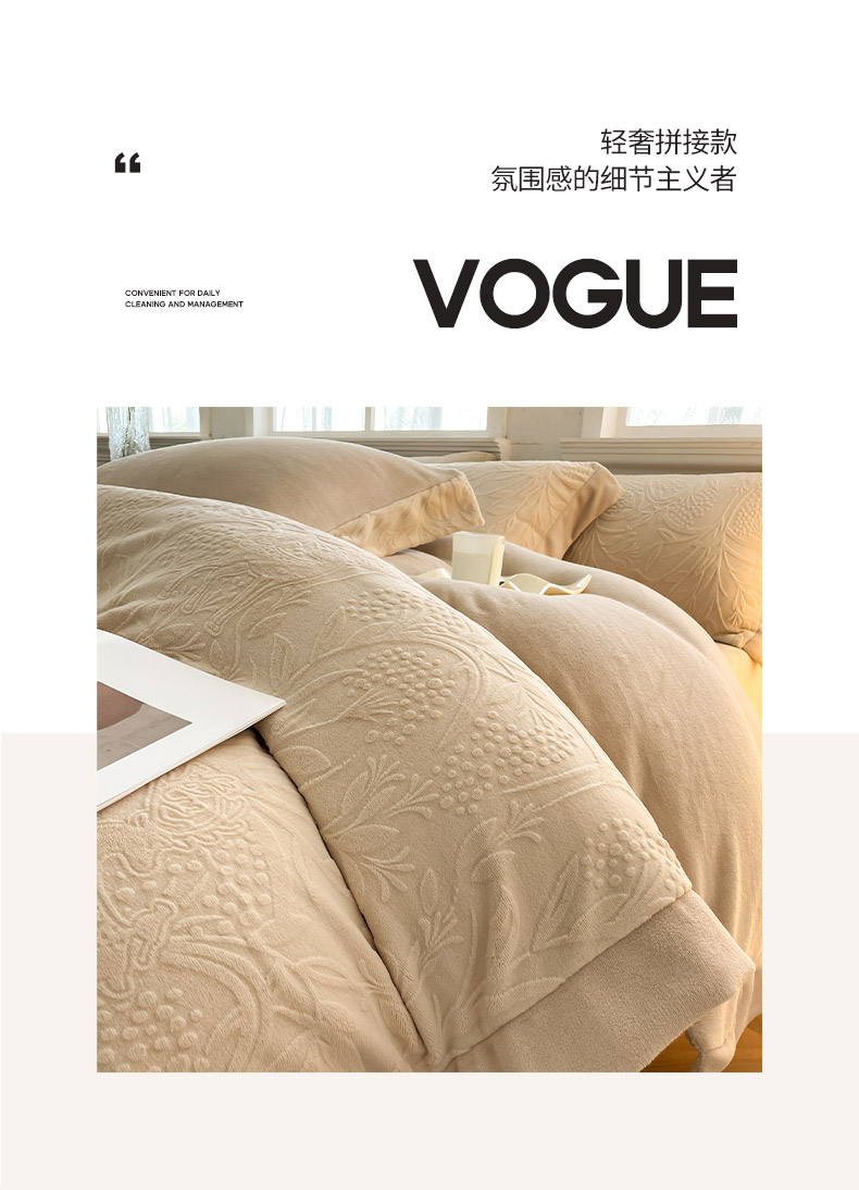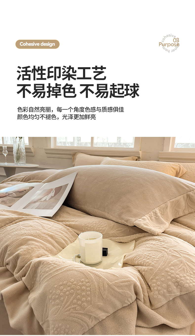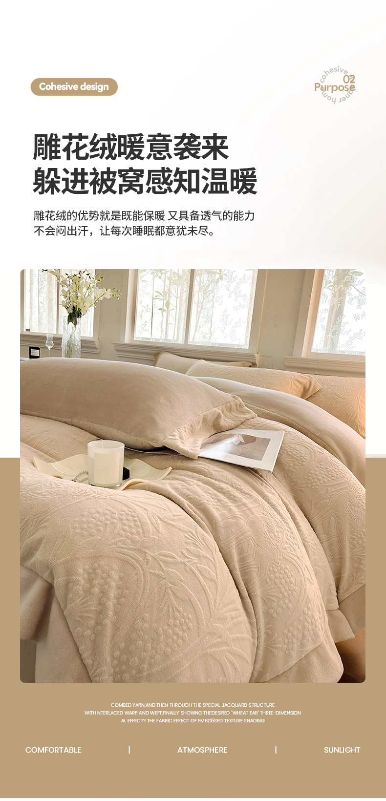 (总) 2024新款A类雕花绒牛奶绒宝宝绒兔绒新品保暖四件套套件 -米鹿提,白桃色,淡雅米,风信紫,琉璃蓝,芝奶绿