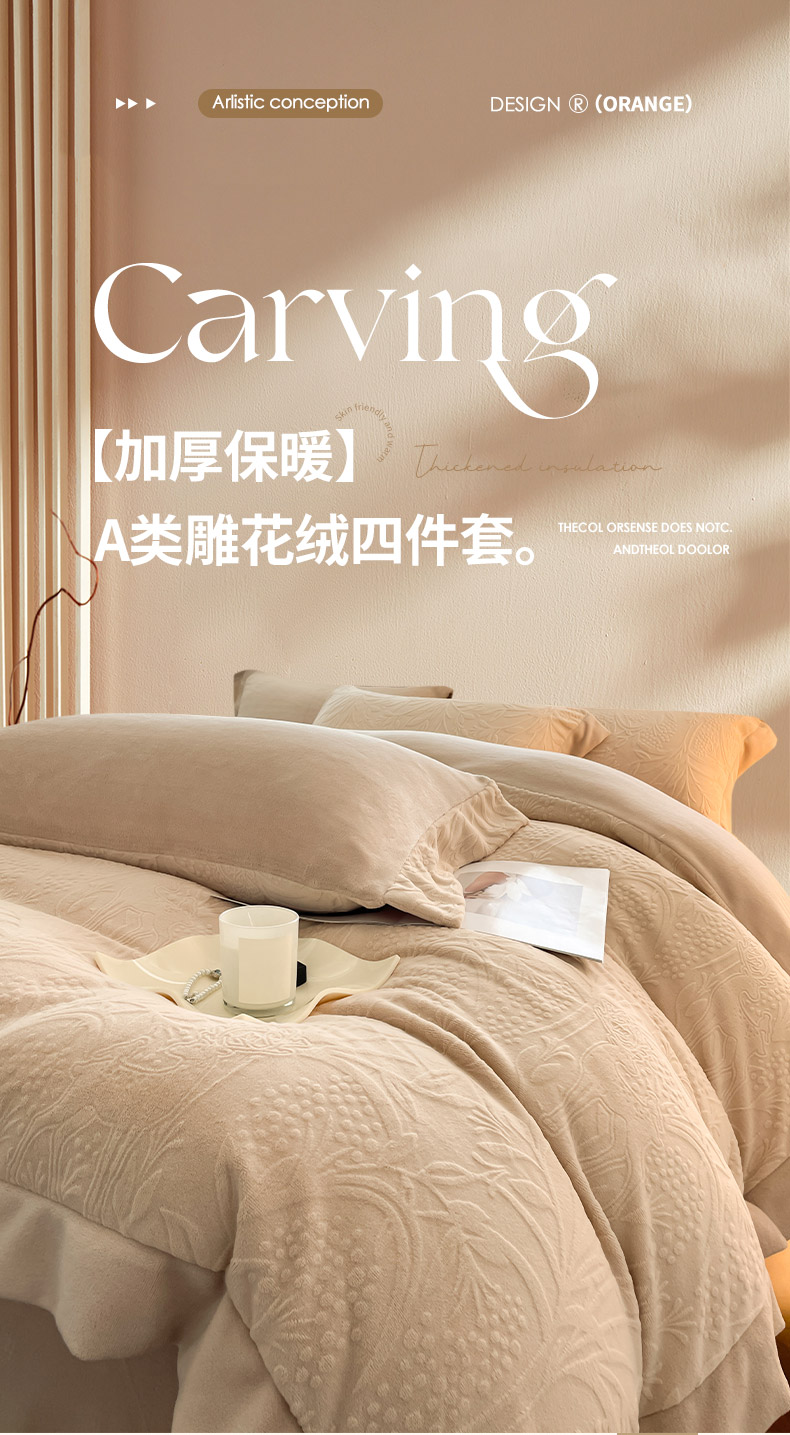 (总)梦馨家纺2024新款A类雕花绒牛奶绒兔绒婴儿绒保暖四件套-安贝拉,安贝拉-静谧粉,安贝拉-琉璃蓝,安贝拉-暖棕色,安贝拉-雅士灰