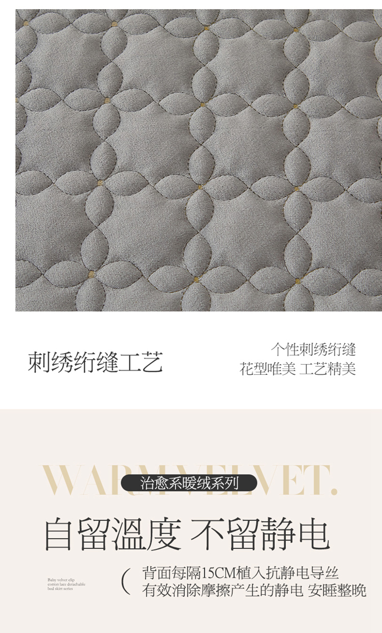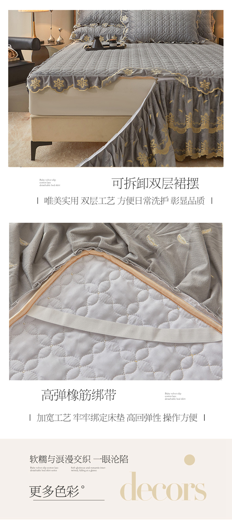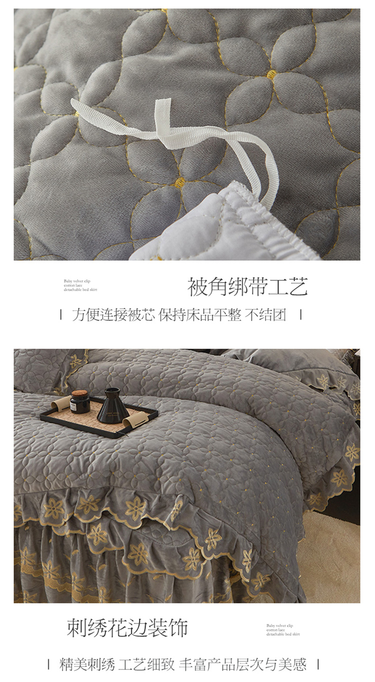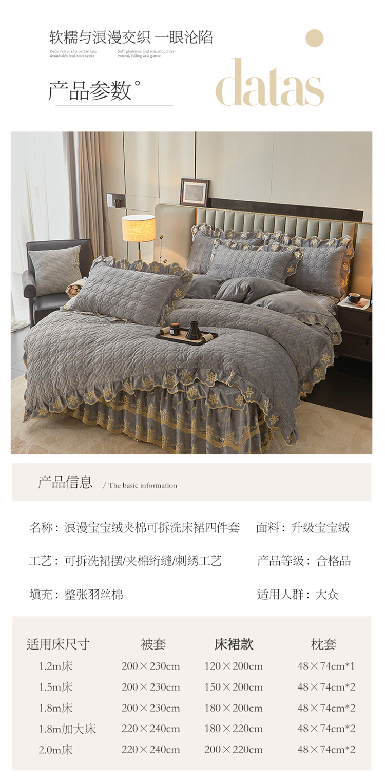 当前位置: 91家纺网 > 商品网购 > 床品套件 > 四件套 > 其它四件套 > 虹星家纺 2024新款可拆卸宝宝绒夹棉床裙三四件套-盛世芳华 盛世芳华 梦灰
