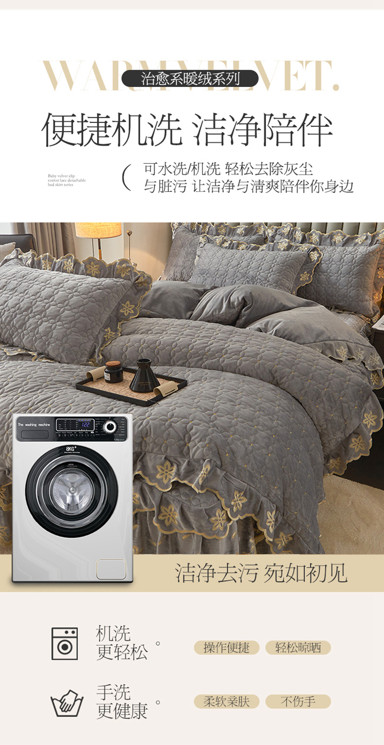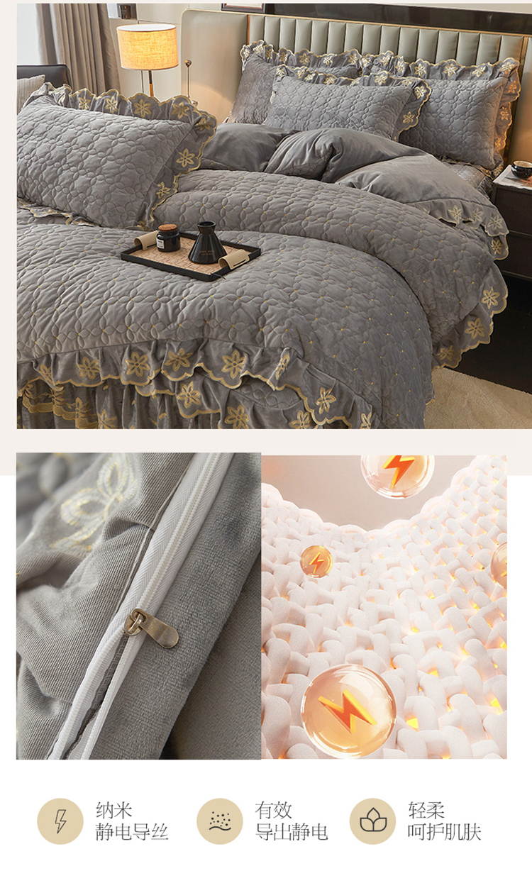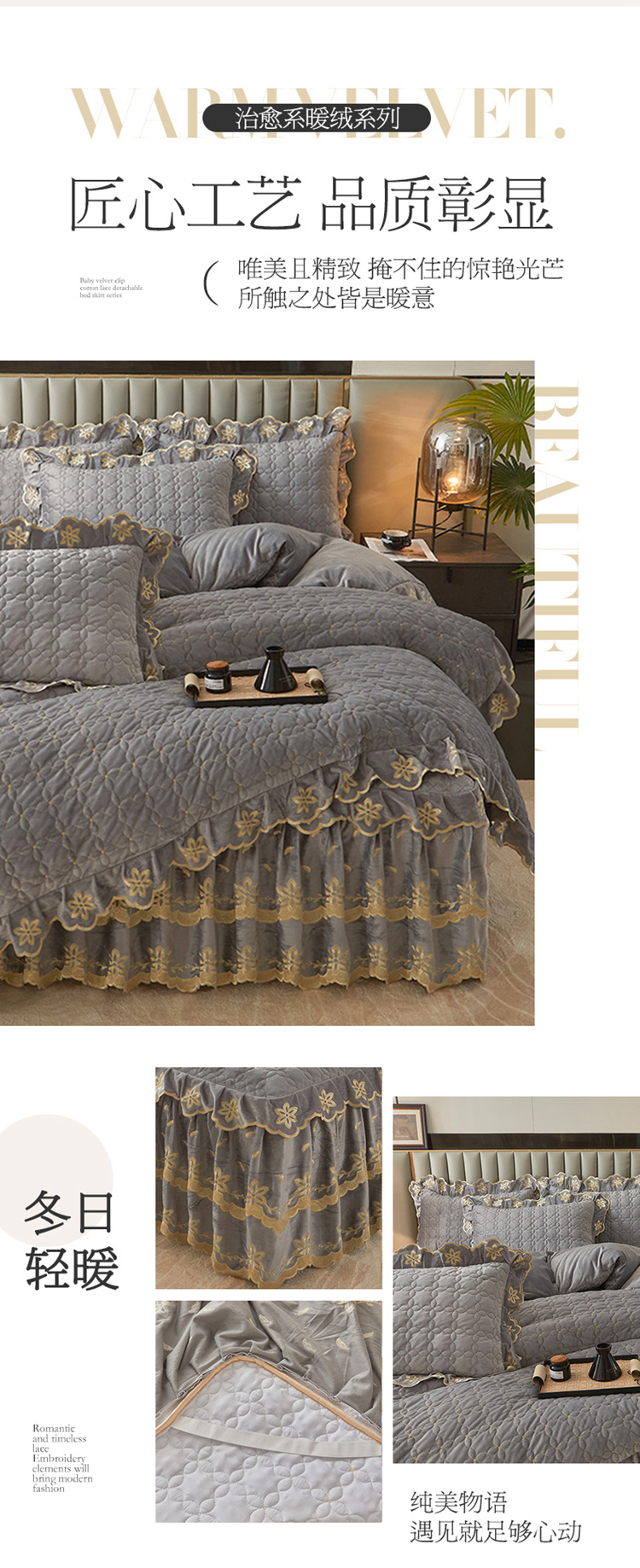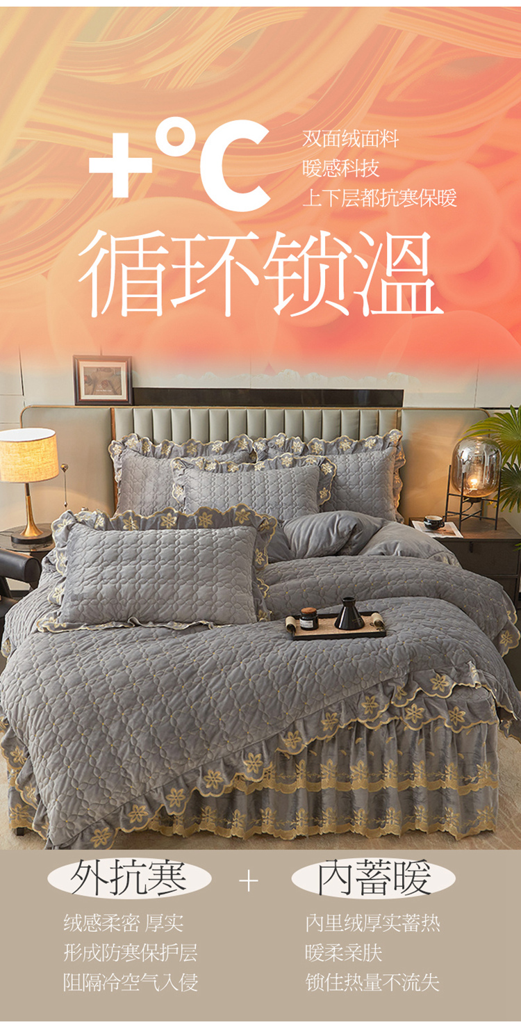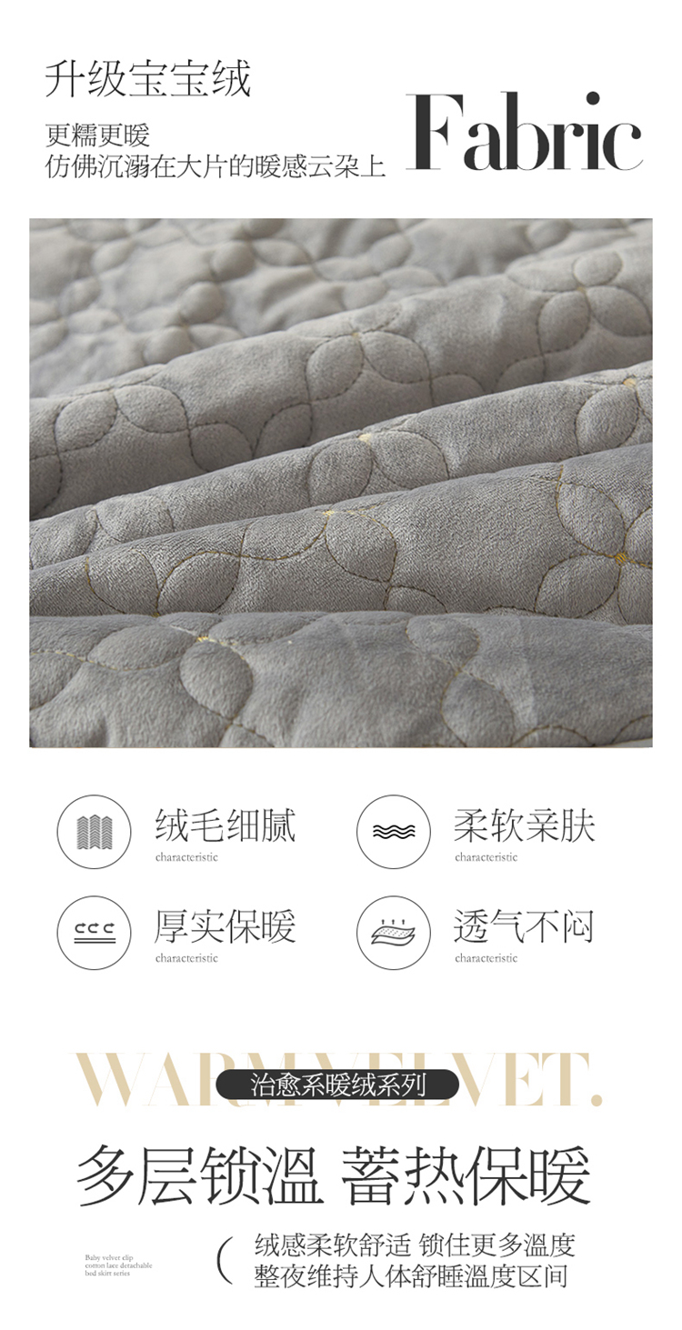 当前位置: 91家纺网 > 商品网购 > 床品套件 > 四件套 > 其它四件套 > 虹星家纺 2024新款可拆卸宝宝绒夹棉床裙三四件套-盛世芳华 盛世芳华 梦灰