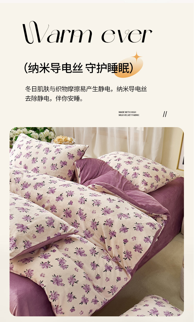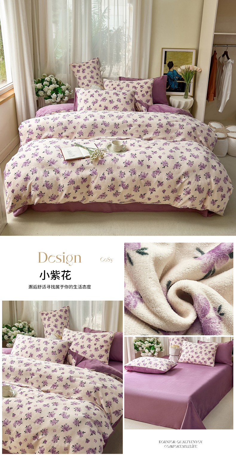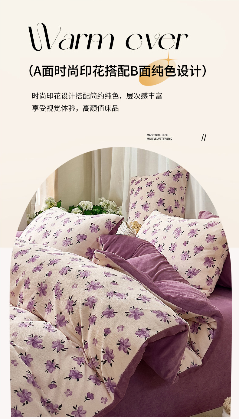 当前位置: 91家纺网 > 商品网购 > 床品套件 > 四件套 > 牛奶绒四件套 > 美派工厂店 2024新款牛奶绒印花四件套 小紫花