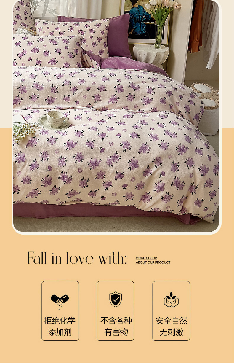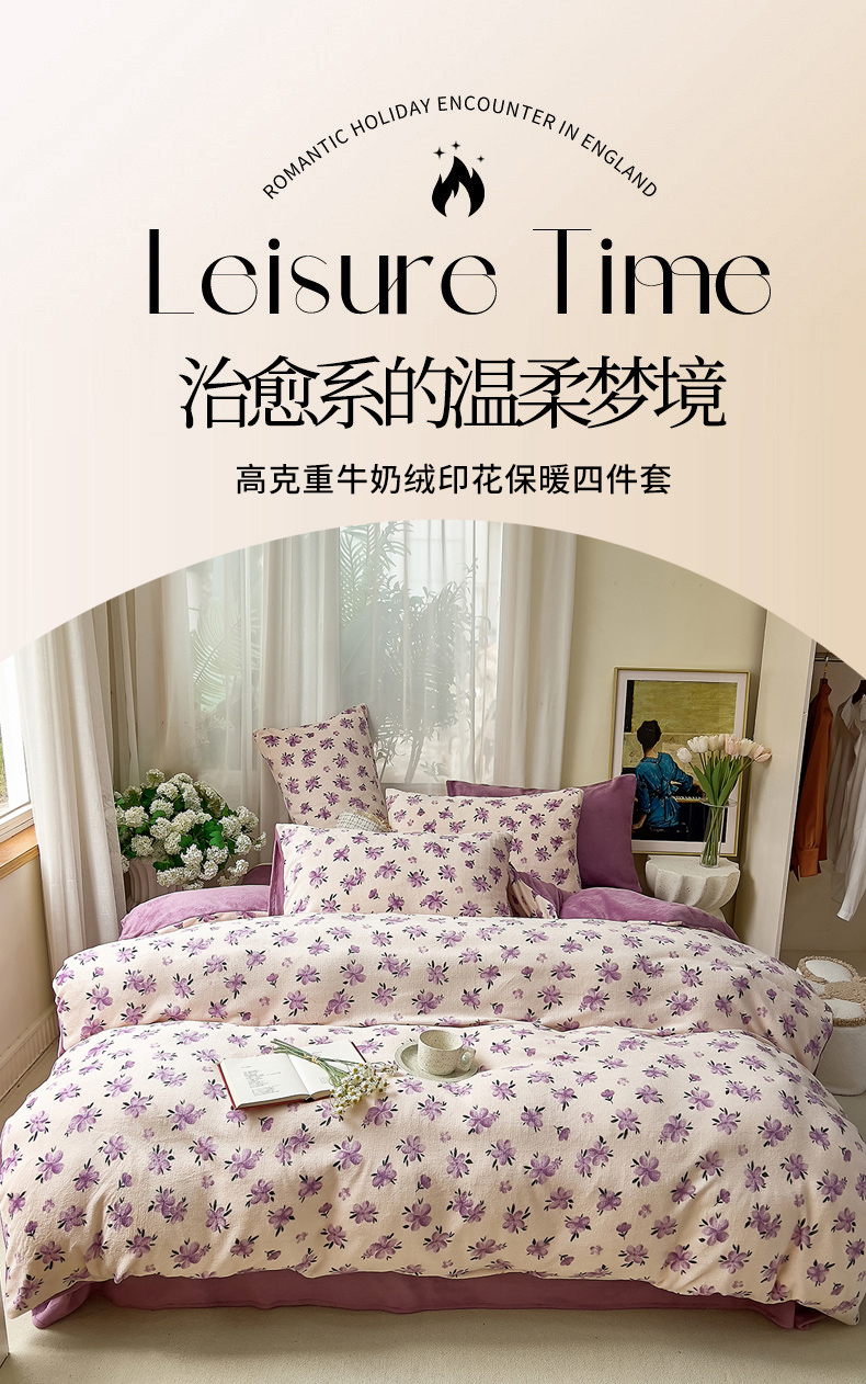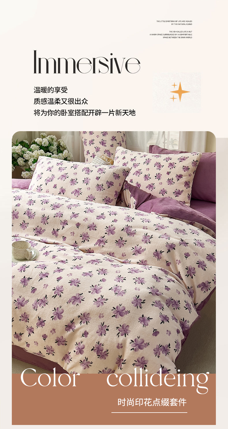 当前位置: 91家纺网 > 商品网购 > 床品套件 > 四件套 > 牛奶绒四件套 > 美派工厂店 2024新款牛奶绒印花四件套 小紫花