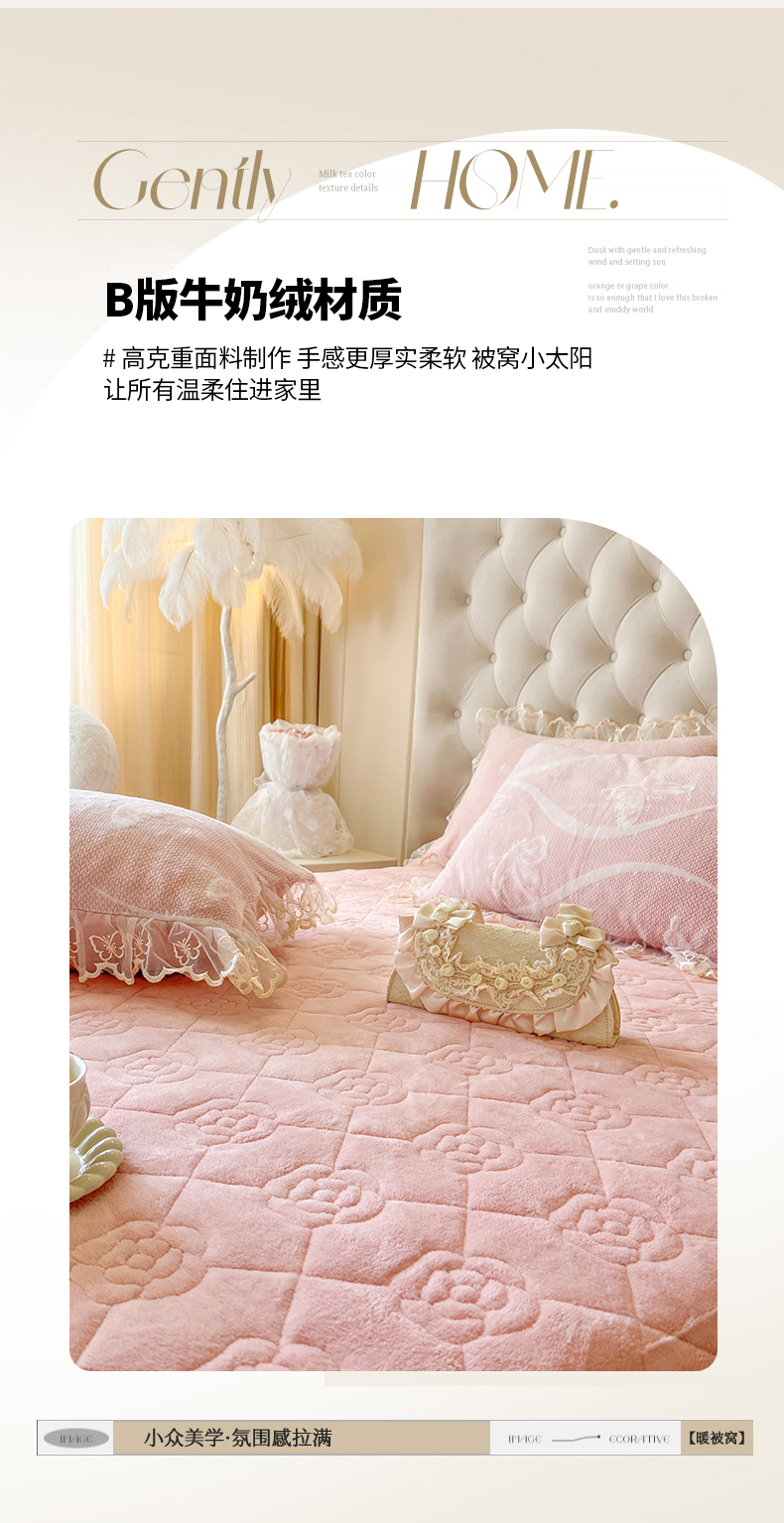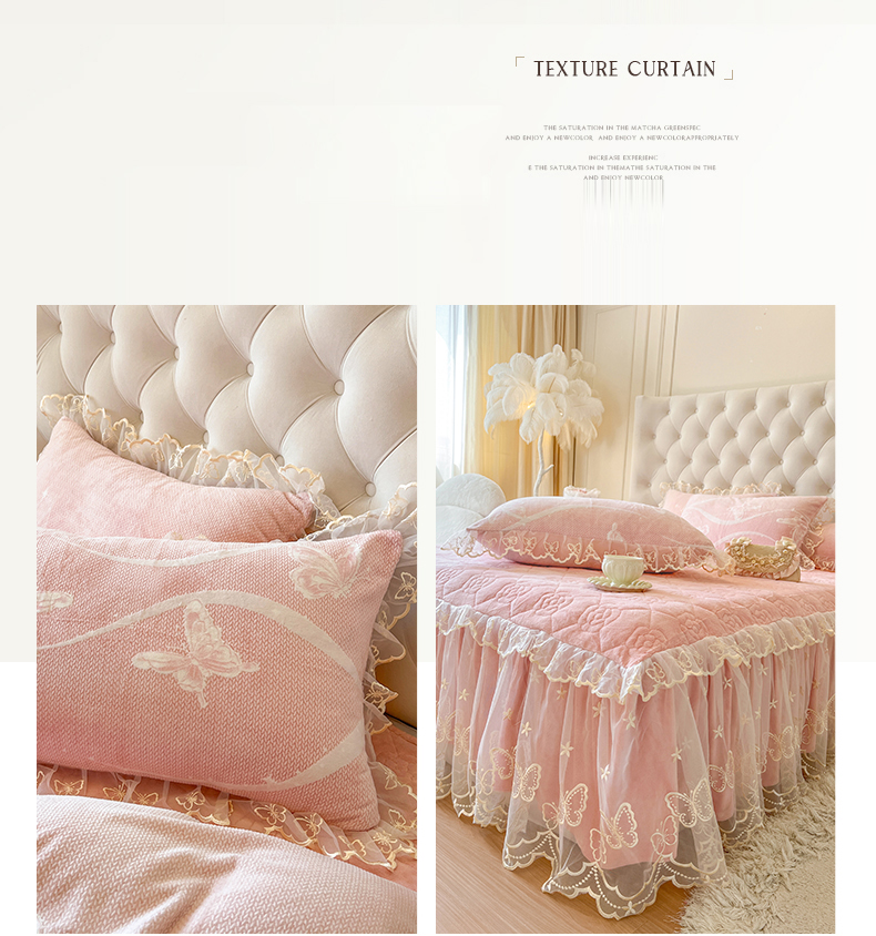 麒豆豆 2024新款雕花绒床裙三件套-蝴蝶梦境 樱粉