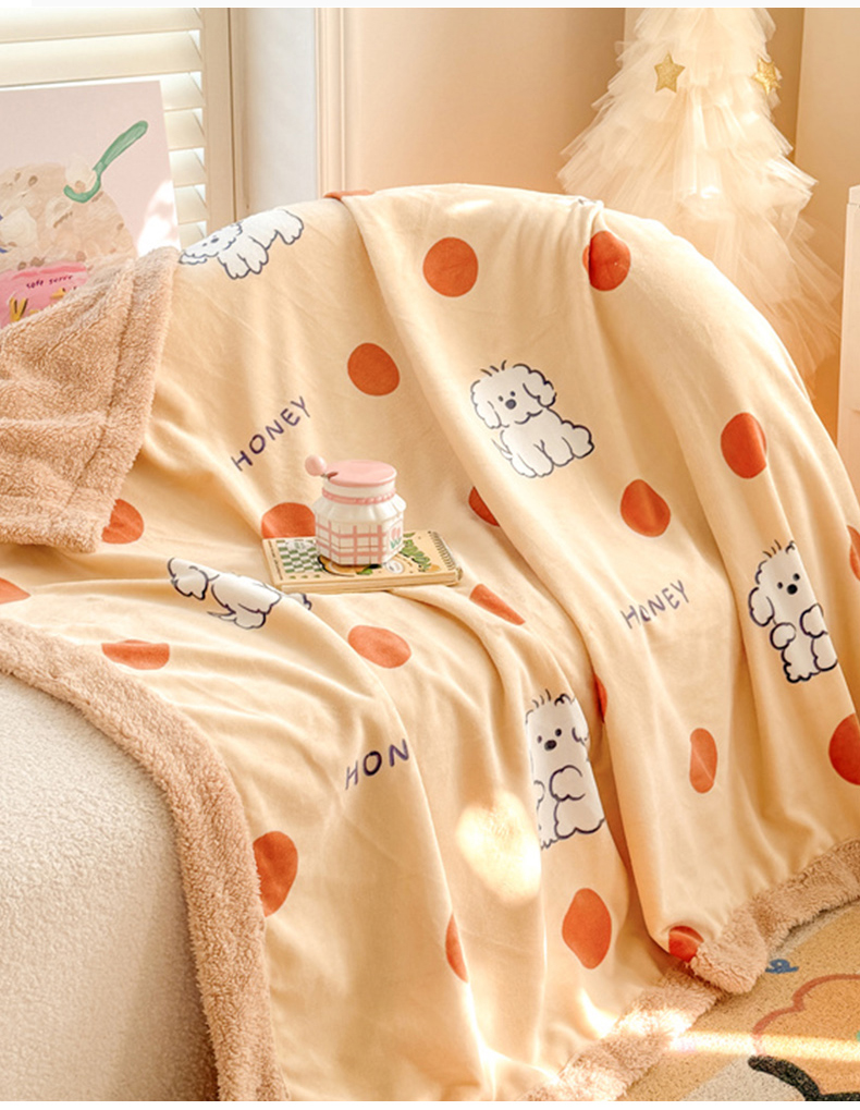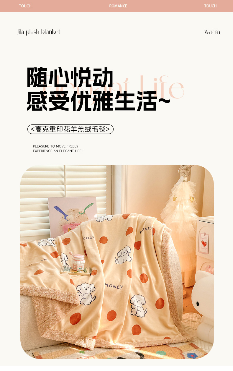 我心家纺 2024新款高克重羊羔绒毛毯毯子 咖啡狗