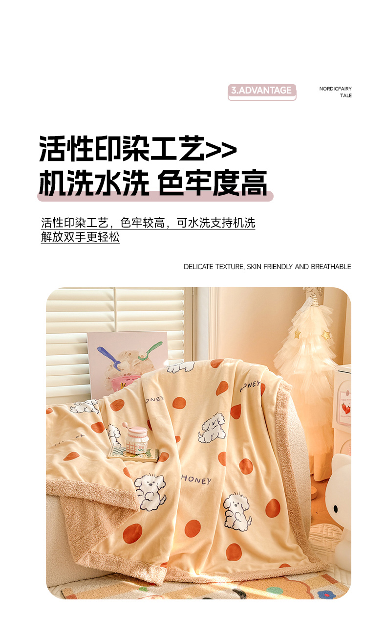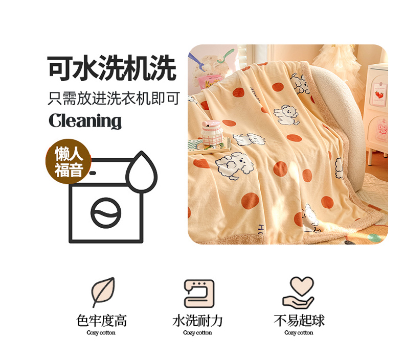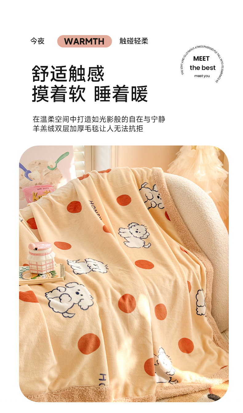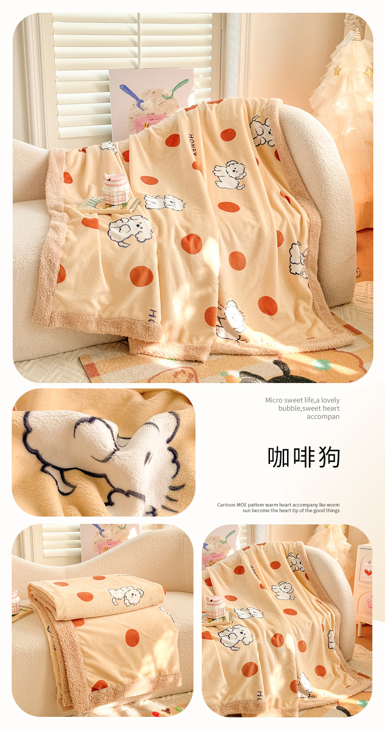 商品名称:我心家纺 2024新款高克重羊羔绒毛毯毯子 咖啡狗