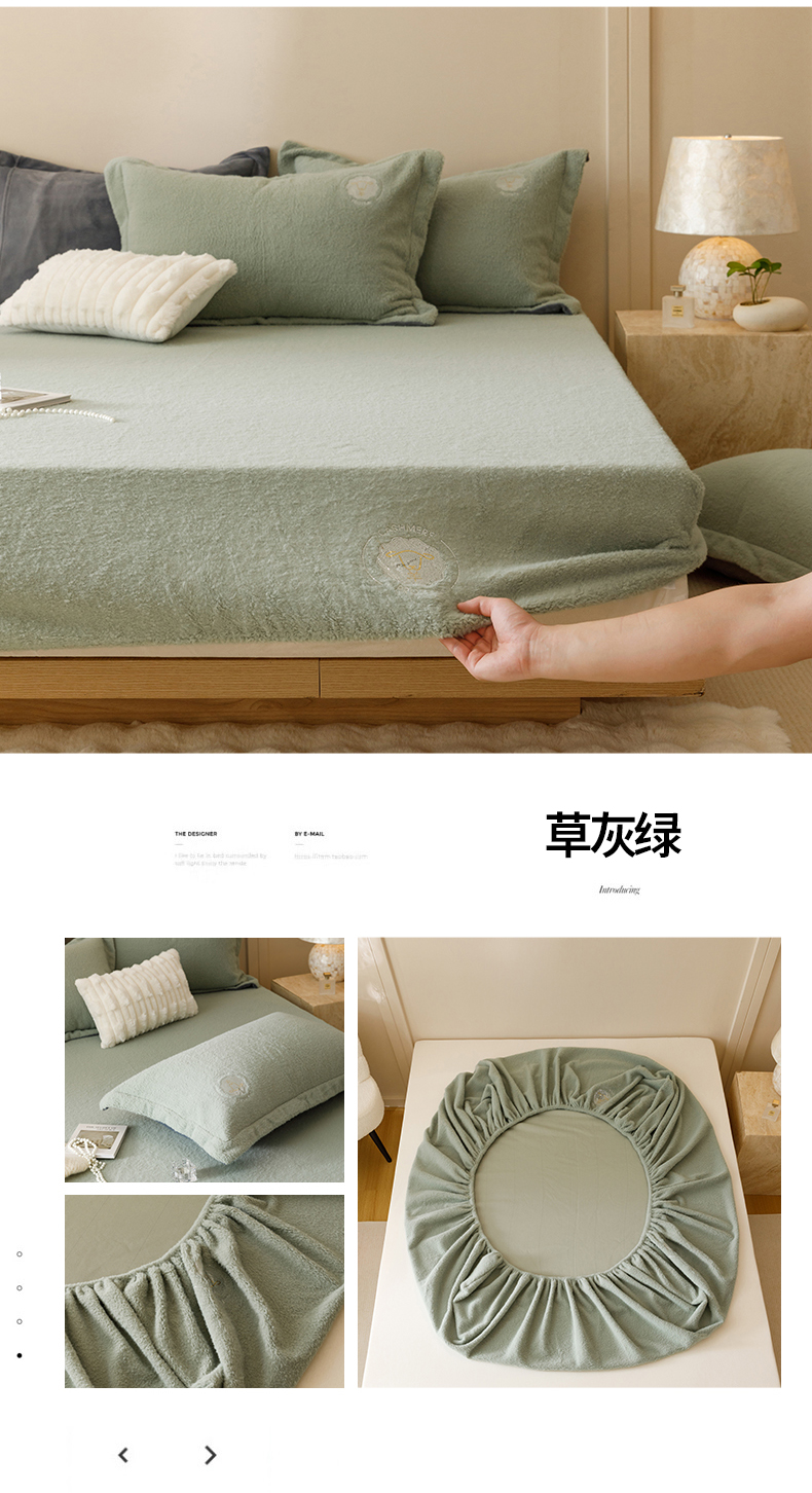 商品名称:金奇达 2024秋冬新品保暖加厚绒类多莉羊绒床笠三件套-【多莉羊绒】 草灰绿