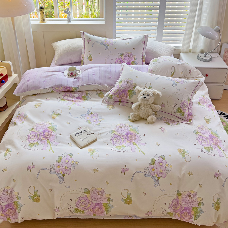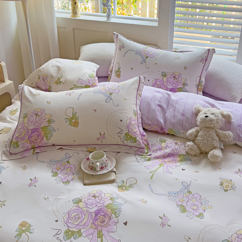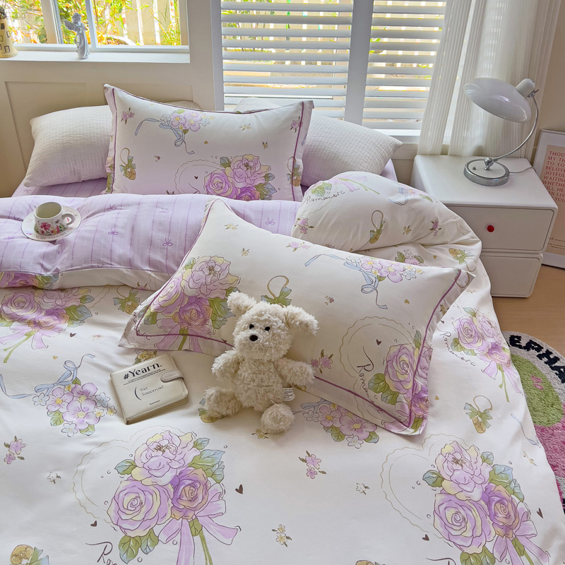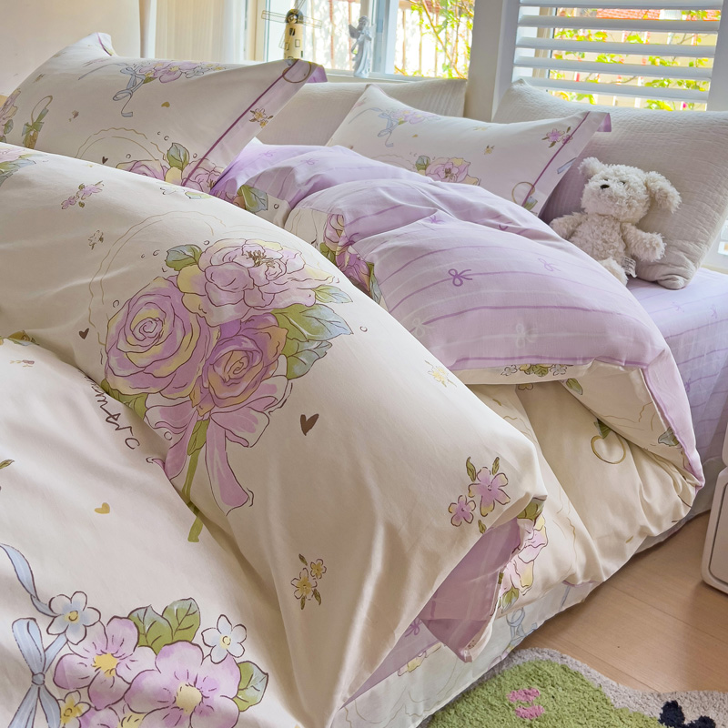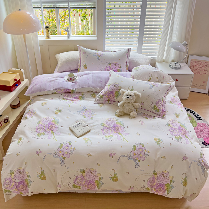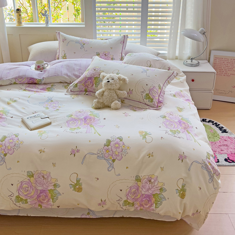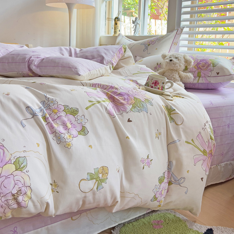 商品名称:乐童家纺 2024新款直播爆款13070纯棉印花吊边款一字绣四件套 花恋序曲