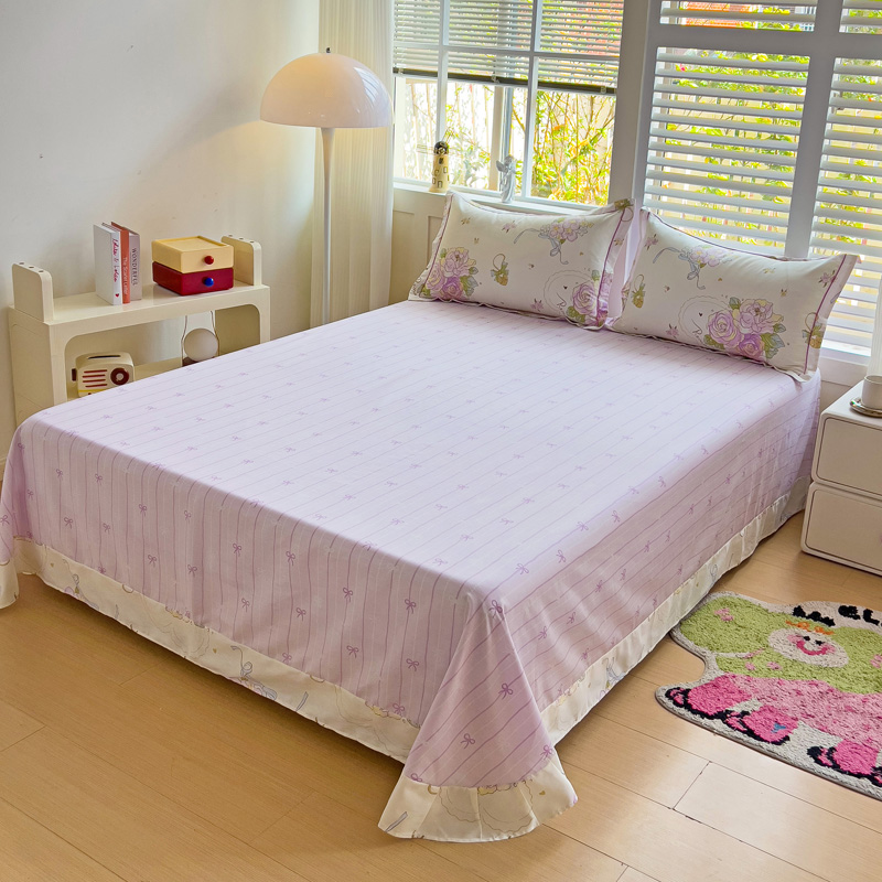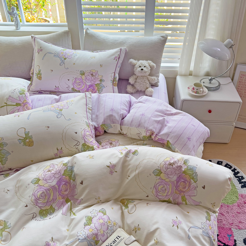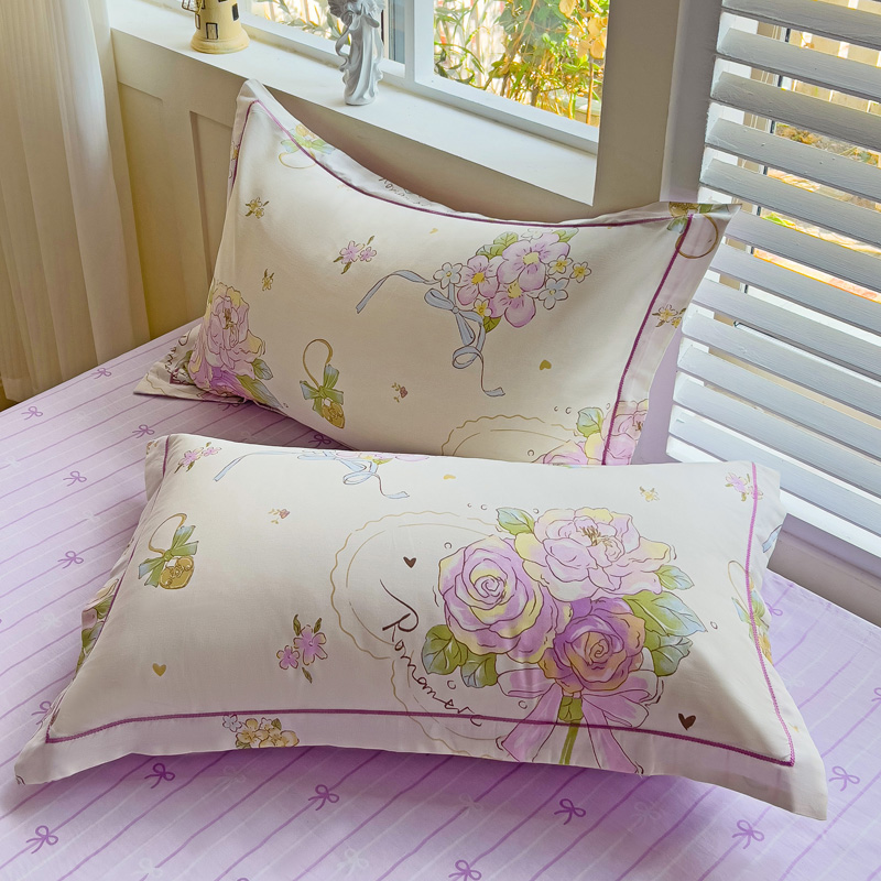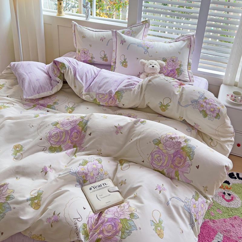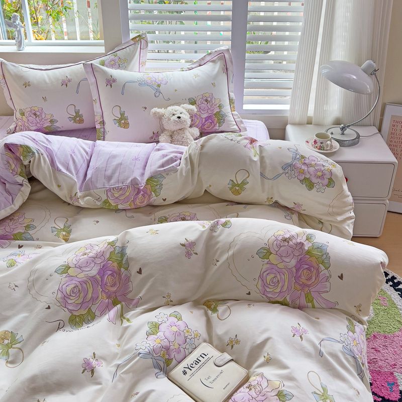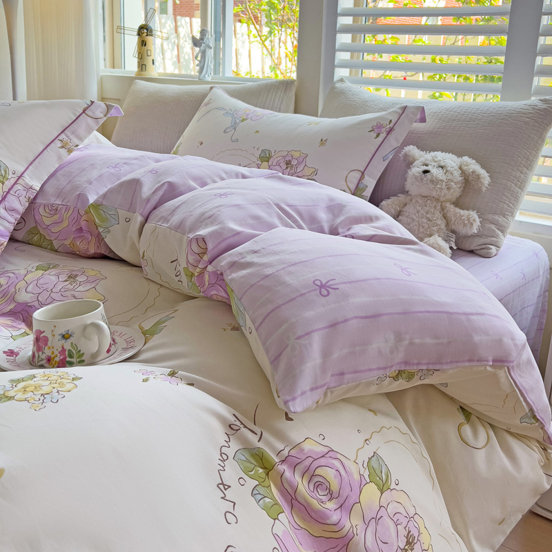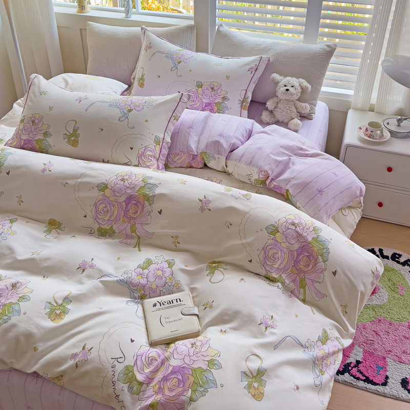 商品名称:乐童家纺 2024新款直播爆款13070纯棉印花吊边款一字绣四件套 花恋序曲
