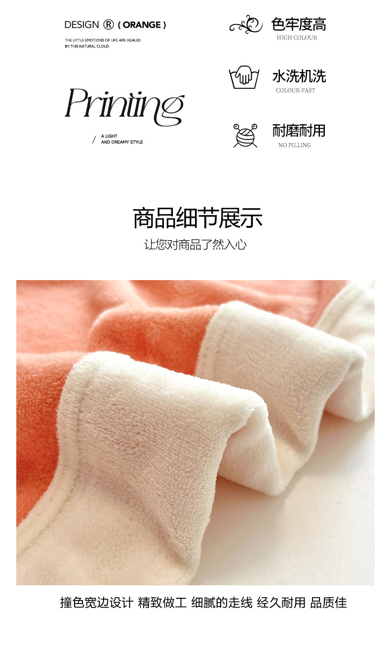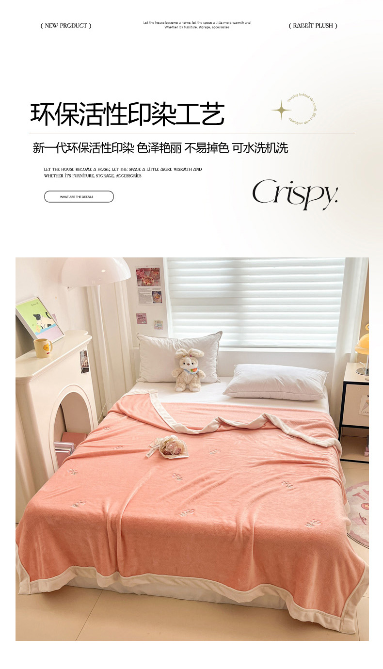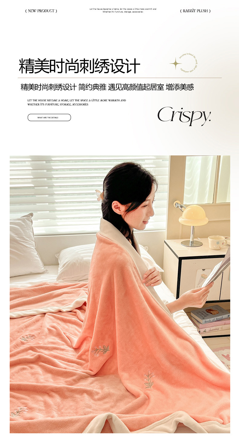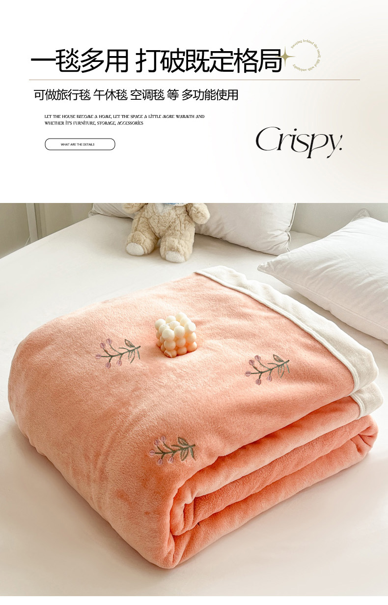 商品名称:慕尚 2025新款简约双面牛奶绒刺绣多功能盖毯-郁金香 可爱花-橘
