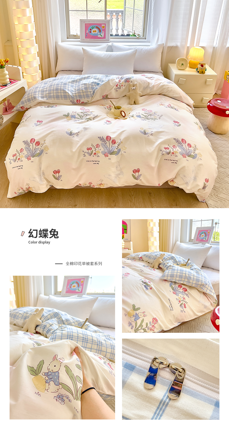 商品名称:拾物记 2024新款A类12868全棉喷气被套 幻蝶兔