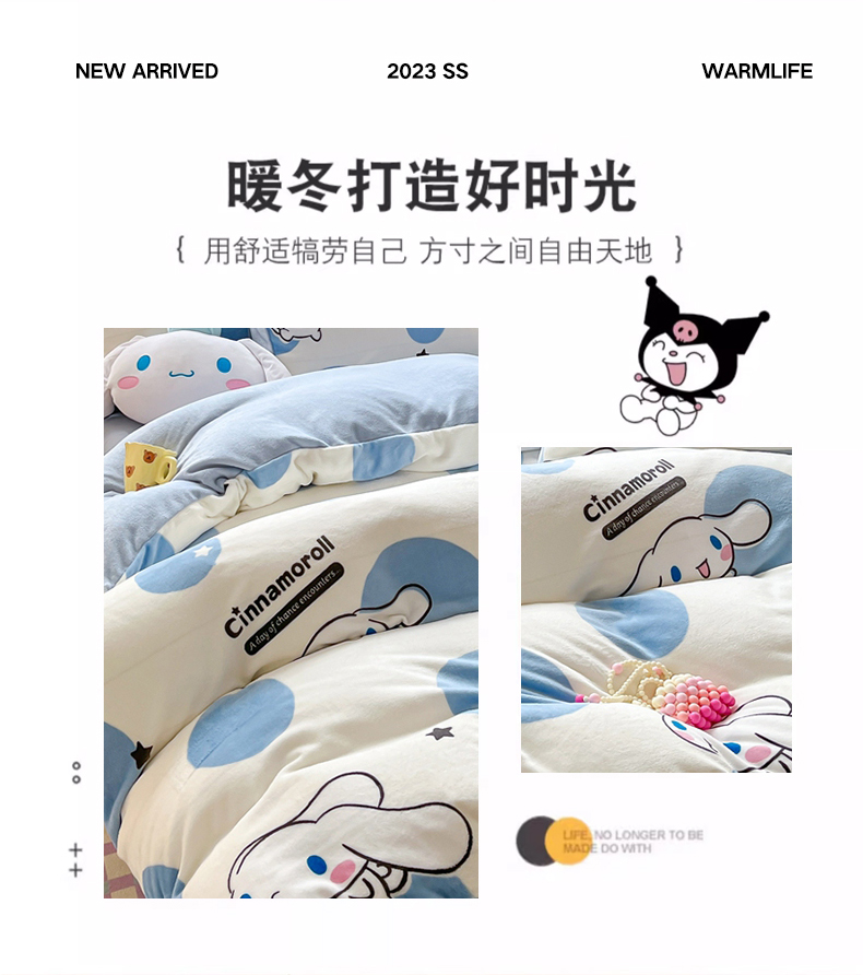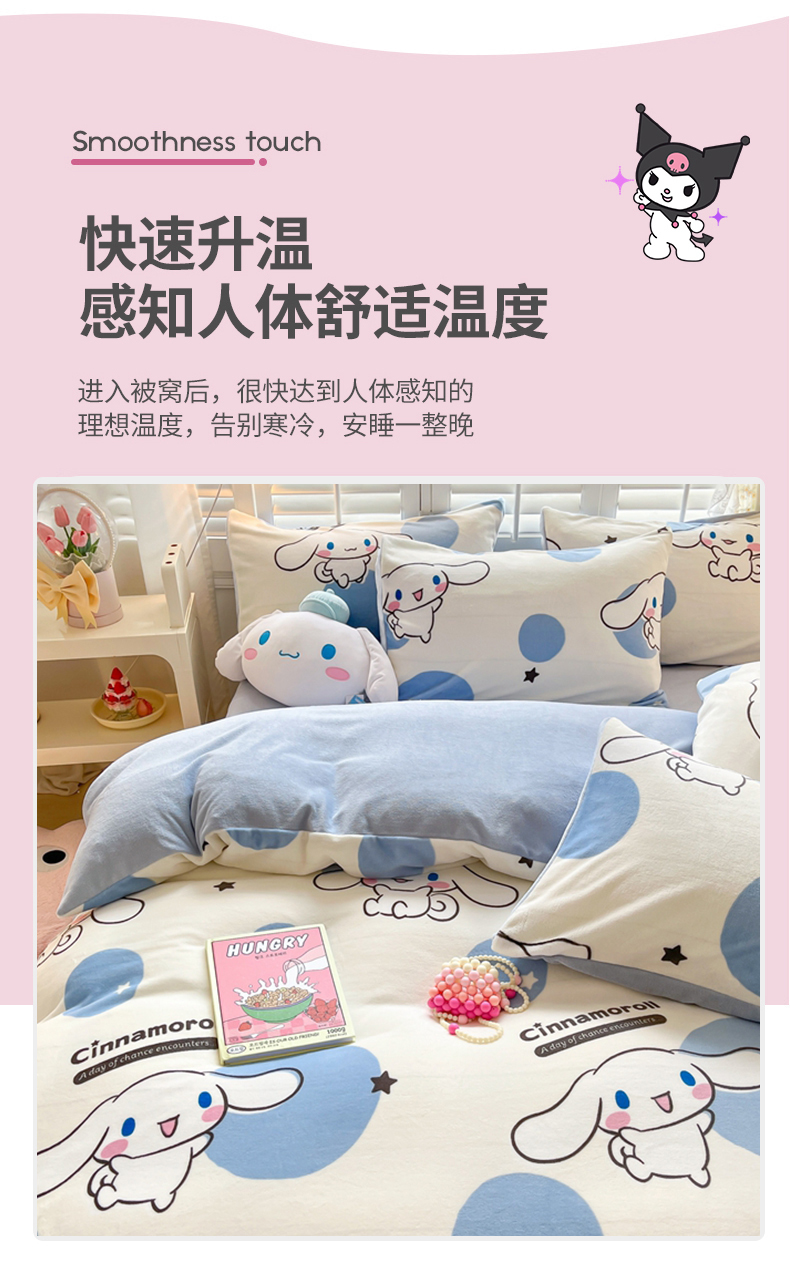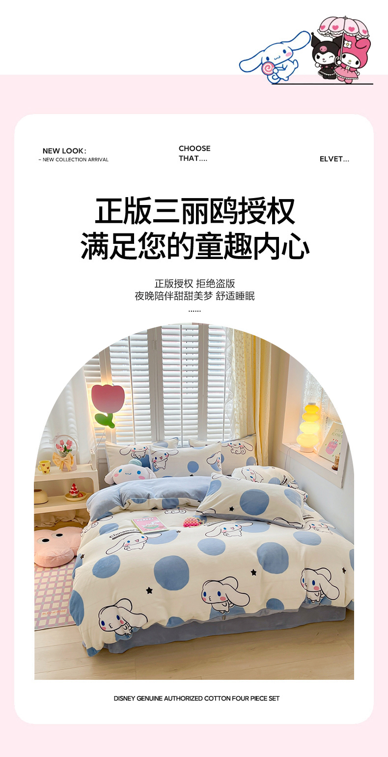 星座家纺 2025新款三丽鸥小版牛奶绒四件套 泡泡玉桂狗