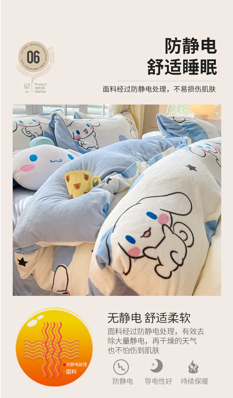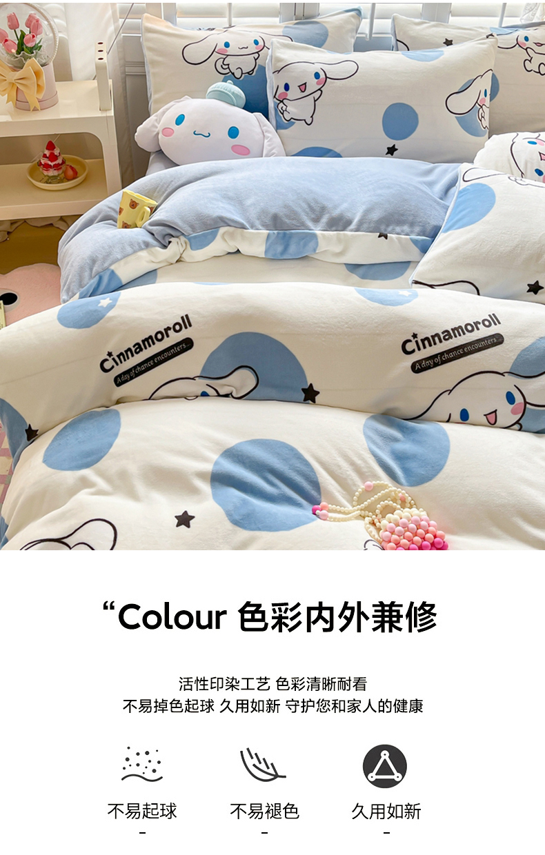商品名称:星座家纺 2025新款三丽鸥小版牛奶绒四件套 泡泡玉桂狗