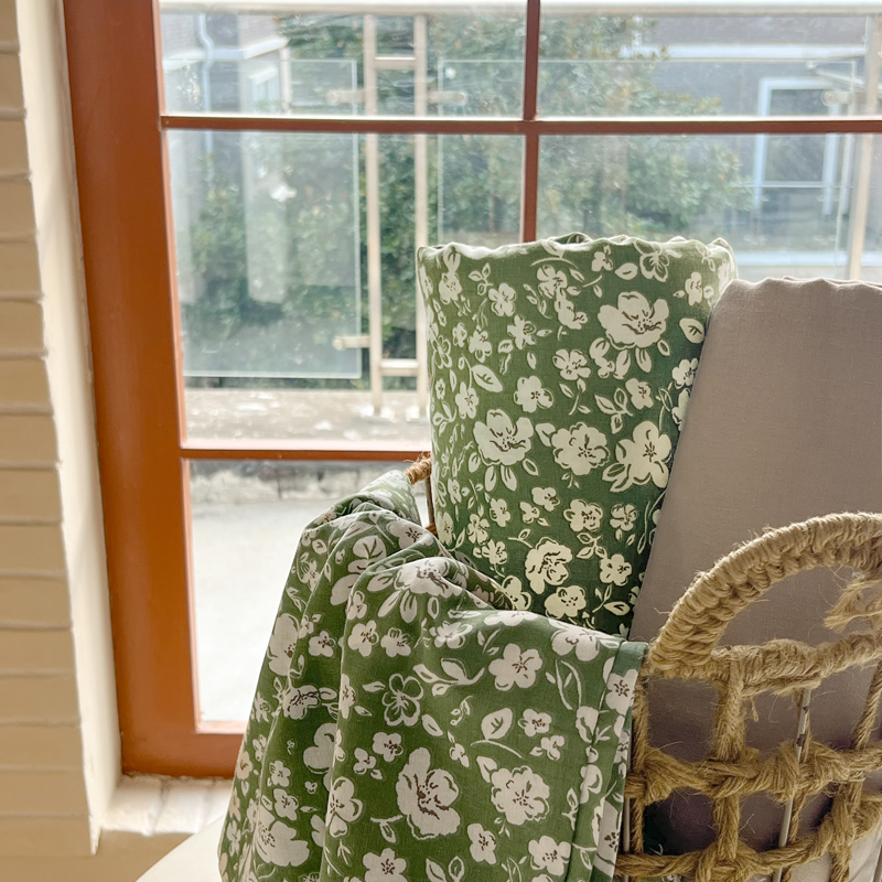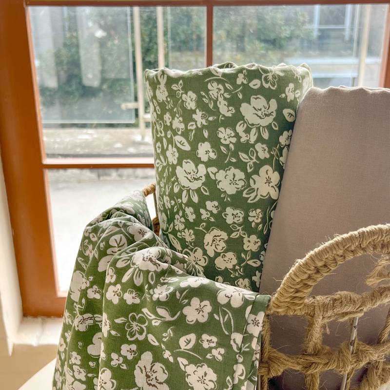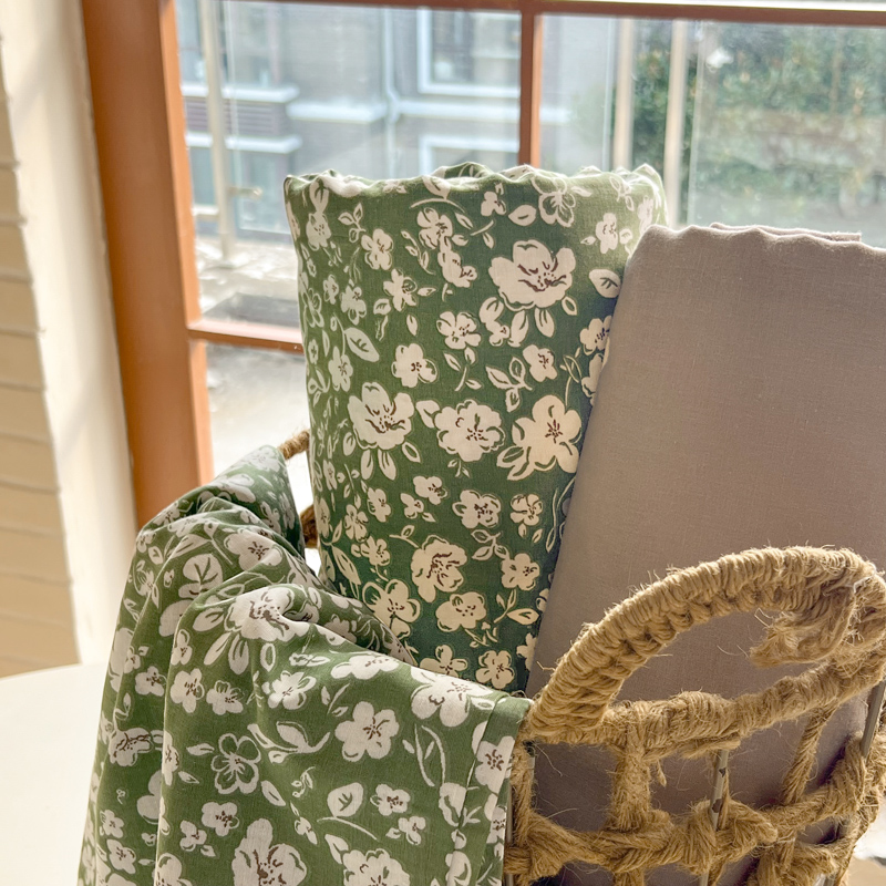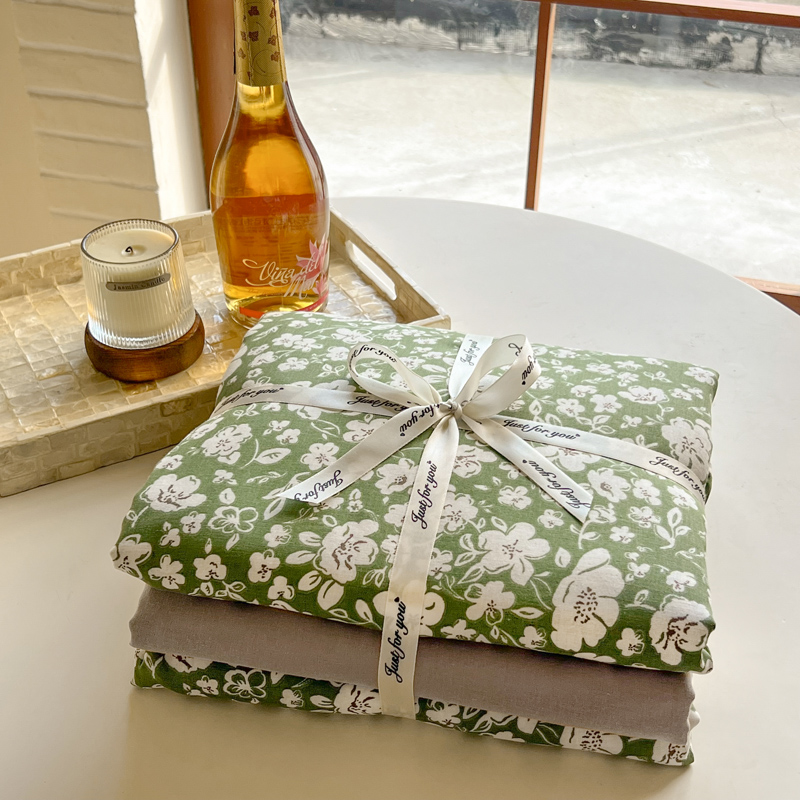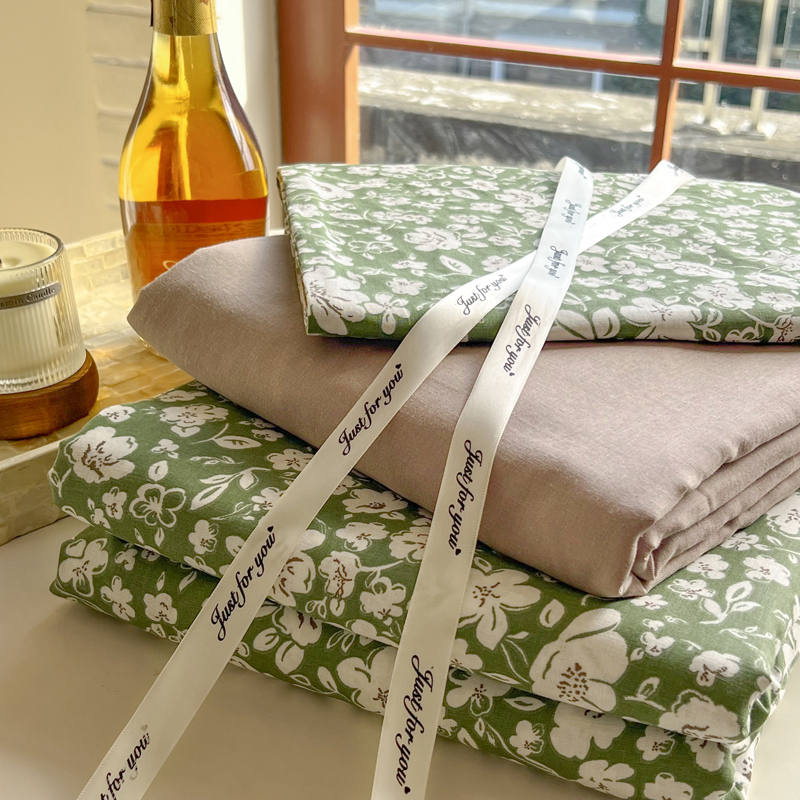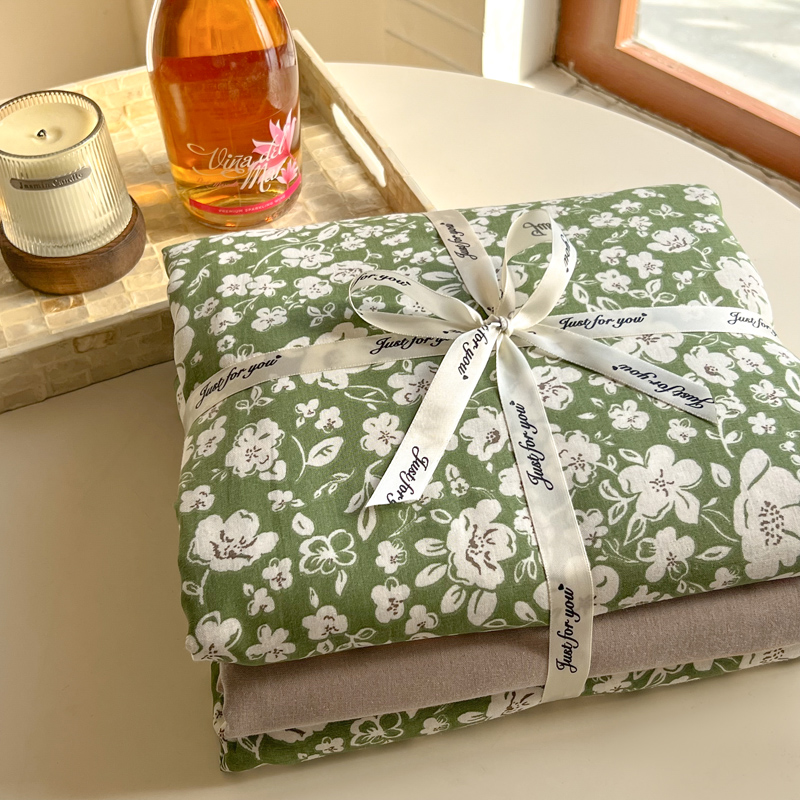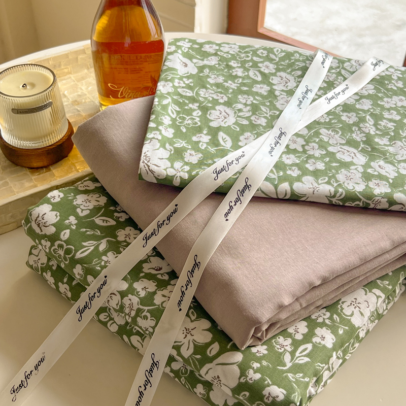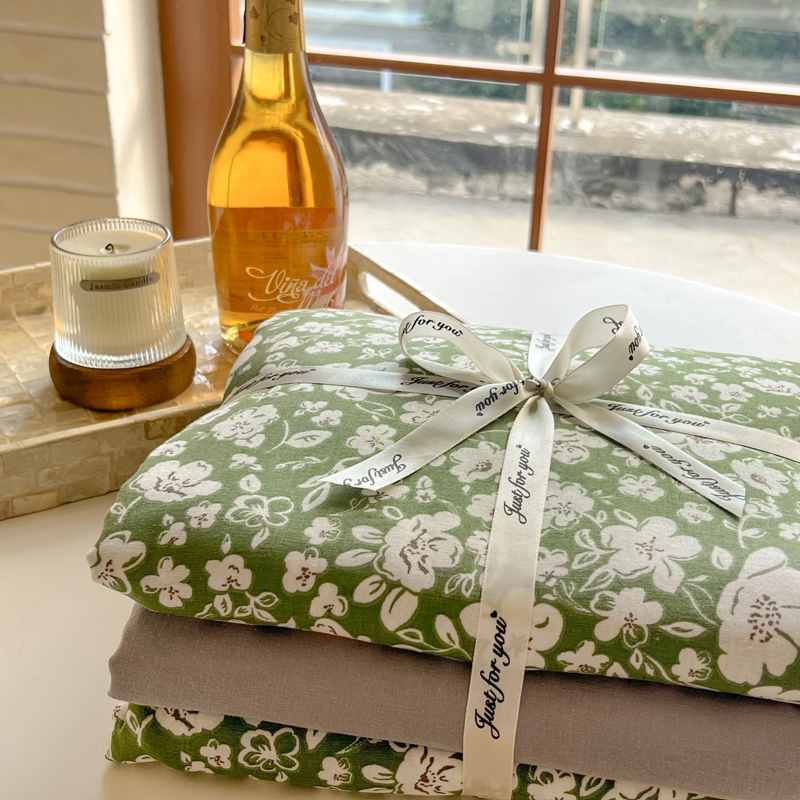 商品名称:一比一家纺 2025新款全棉母婴级抗菌有氧全棉双层纱亲肤全棉小清新印花三件套四件套 木槿花-绿