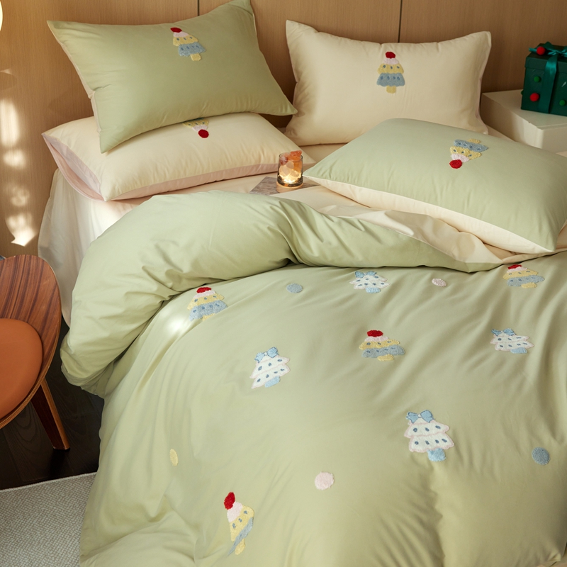 (总)初拾 2025新款100s澳棉刺绣四件套—圣黛(棉),棉圣黛-果绿,棉圣黛-少女粉