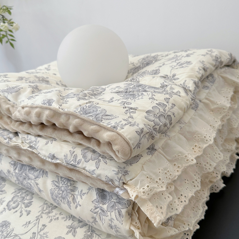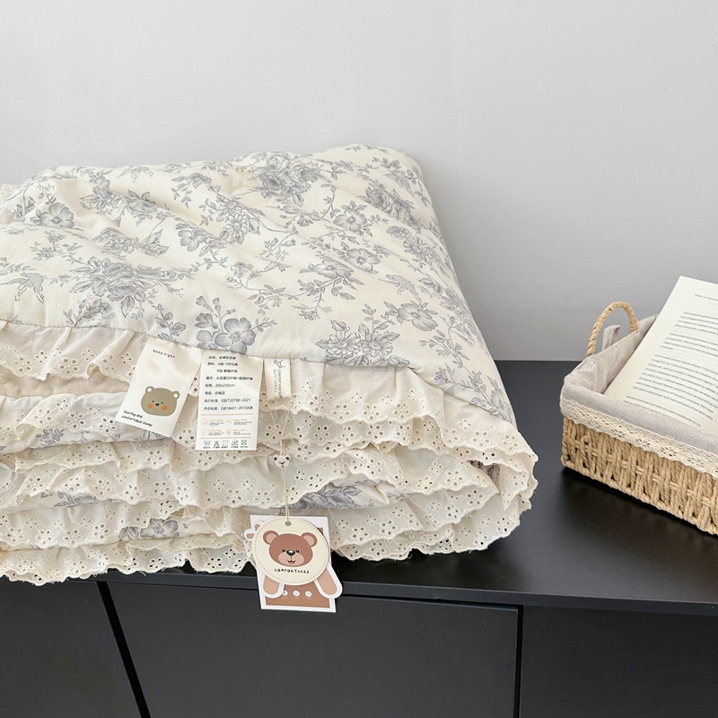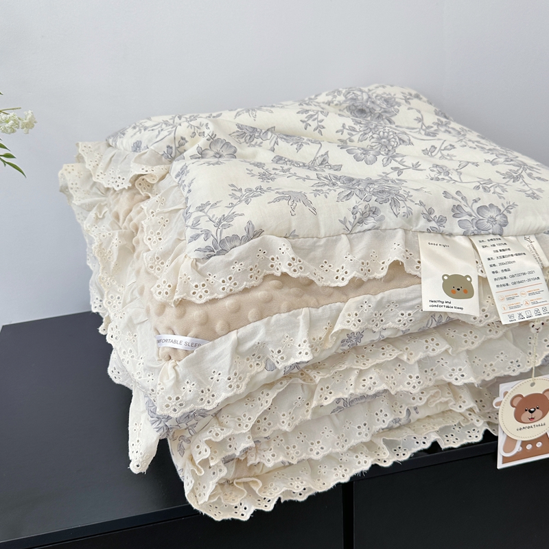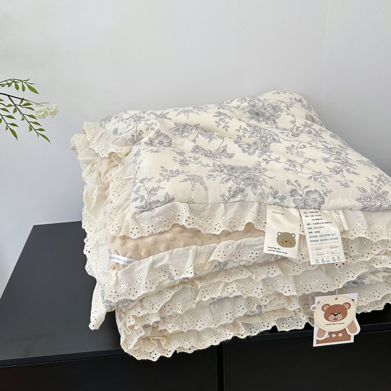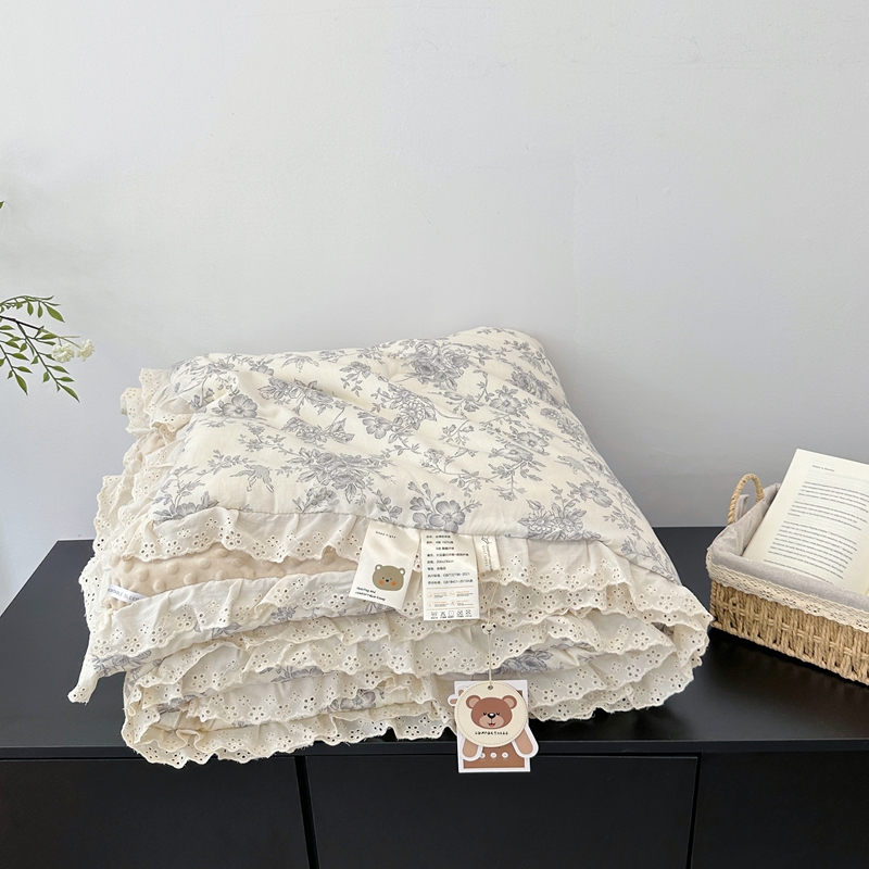 佰织鑫家居 2024新款全棉法式花边懒人豆豆被 赫本