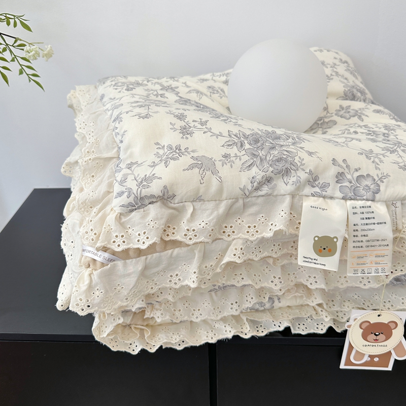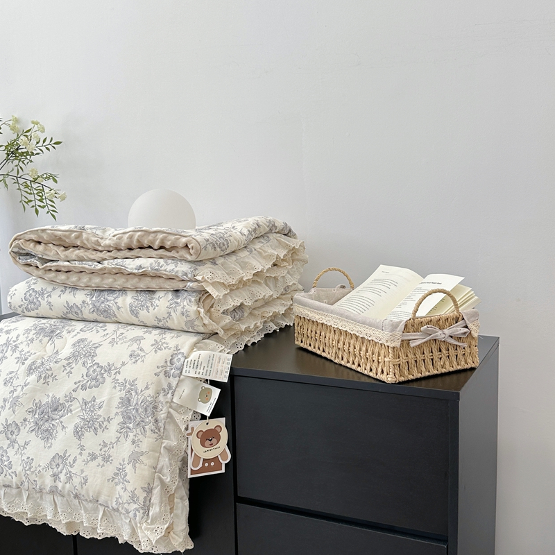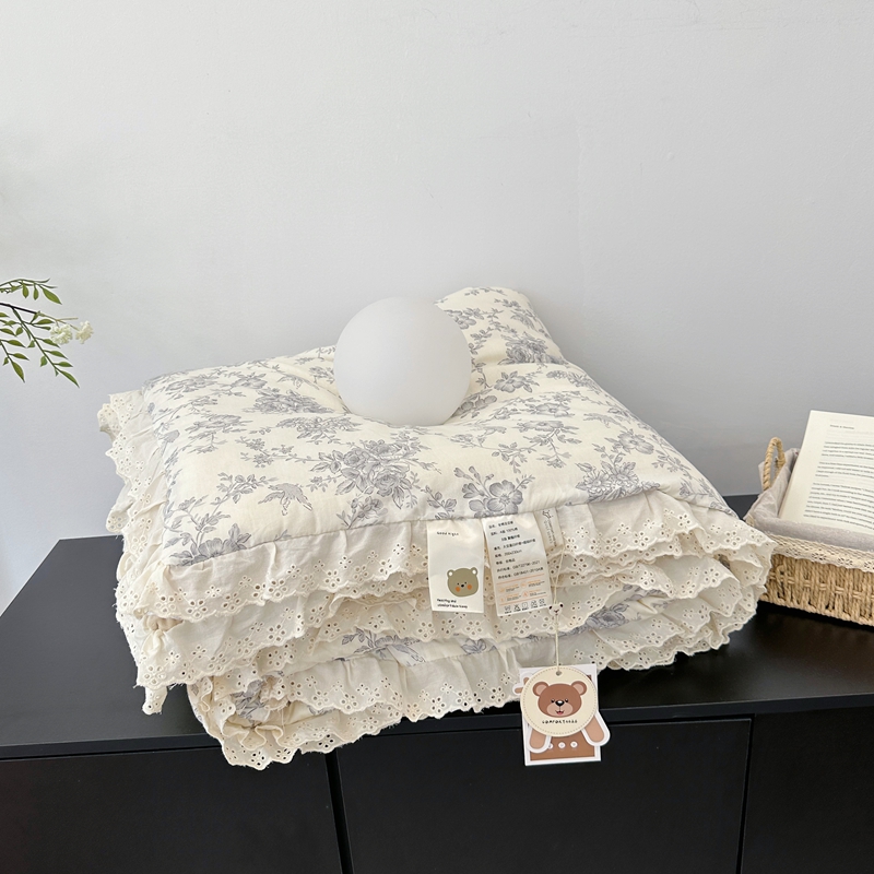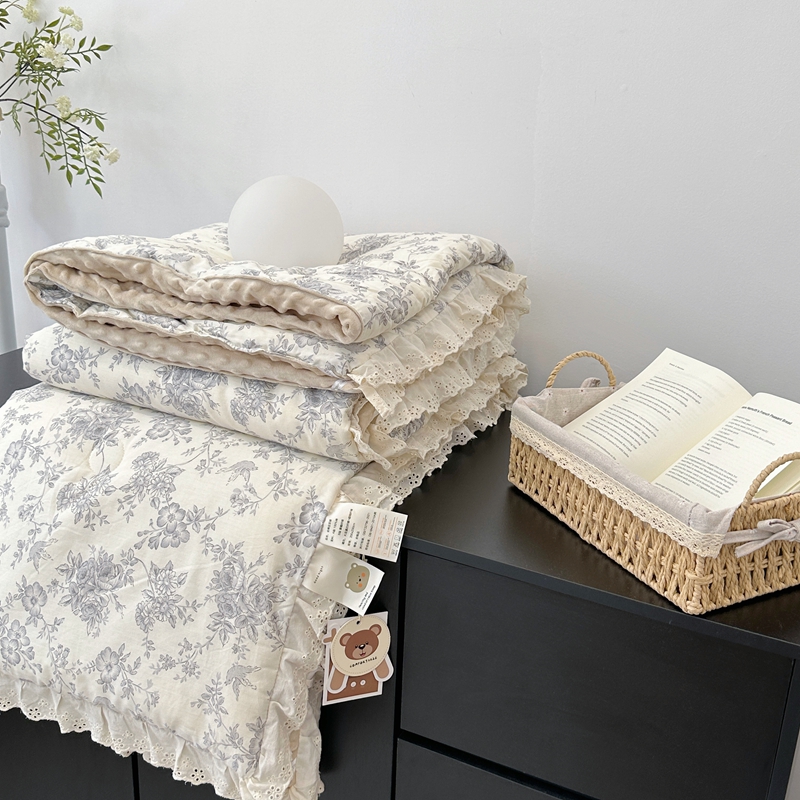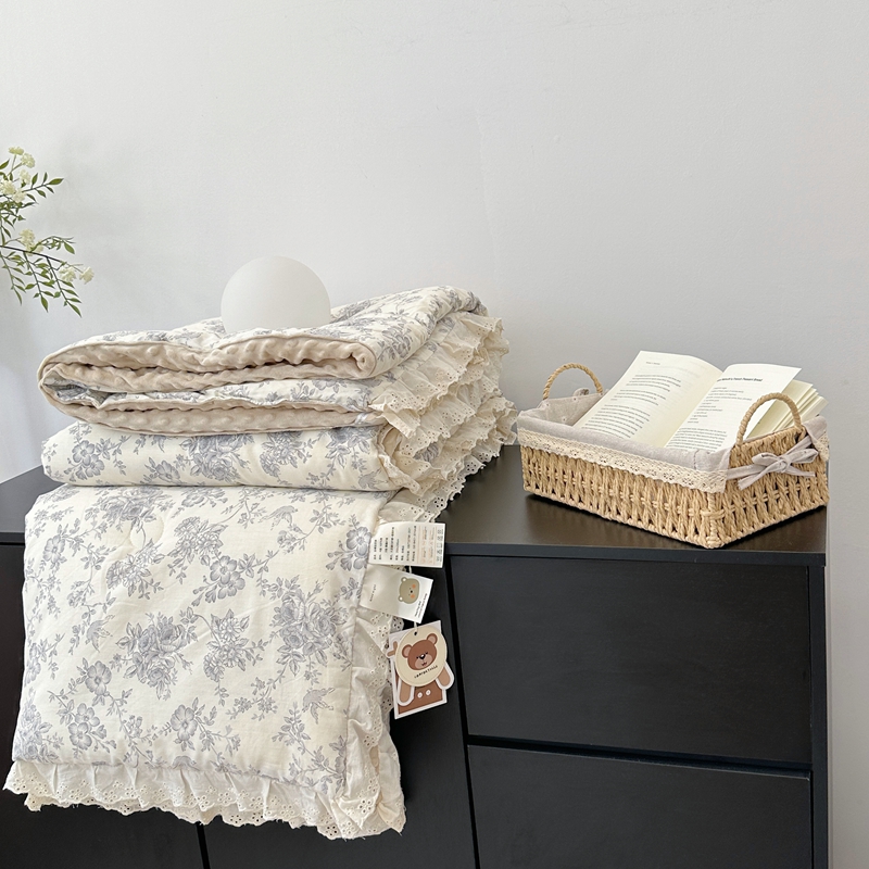 佰织鑫家居 2024新款全棉法式花边懒人豆豆被 赫本