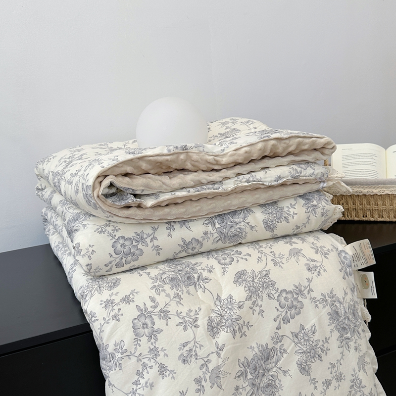 • 91家纺网 家纺一手货源 找家纺 (总)佰织鑫家居 2025新款棉加绒床盖三件套花苞豆豆被四件套,梨花落,落了白