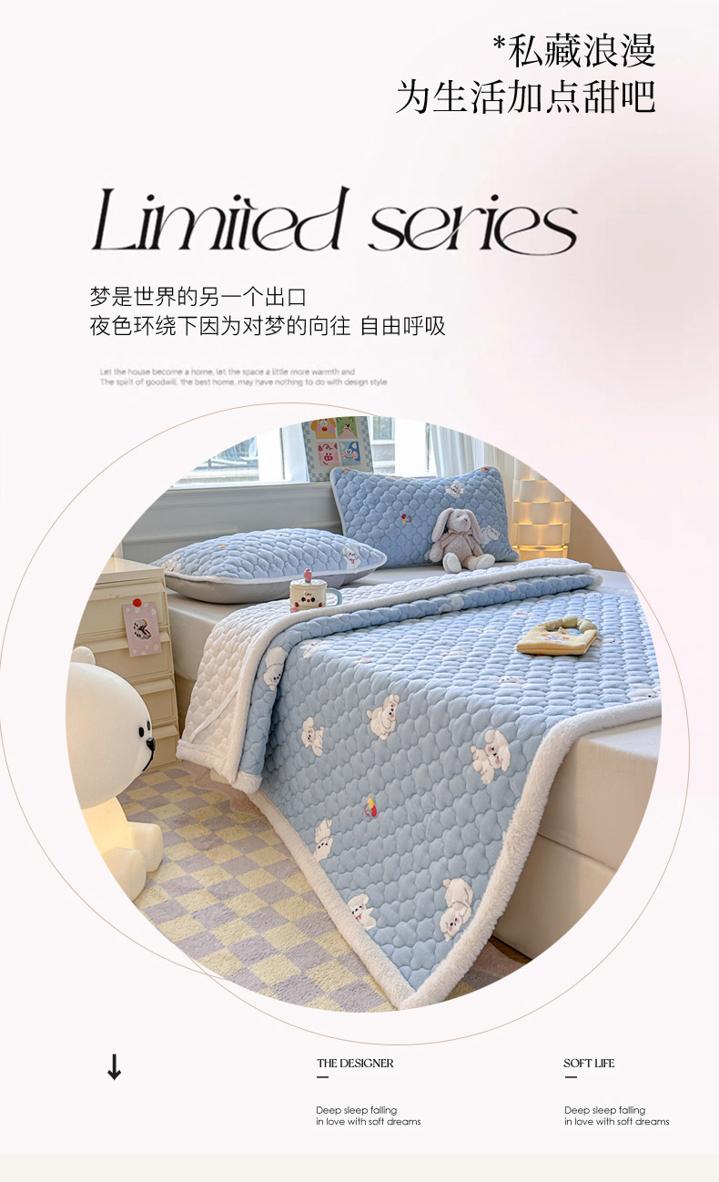 当前位置: 91家纺网 > 商品网购 > 床品套件 > 四件套 > 其它四件套 > 慕尚家纺 2025牛奶绒床盖床褥被套三件套四件套 床垫-宝贝熊仔