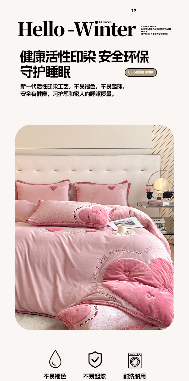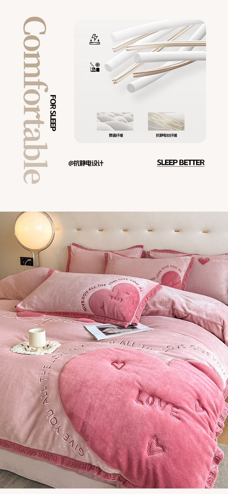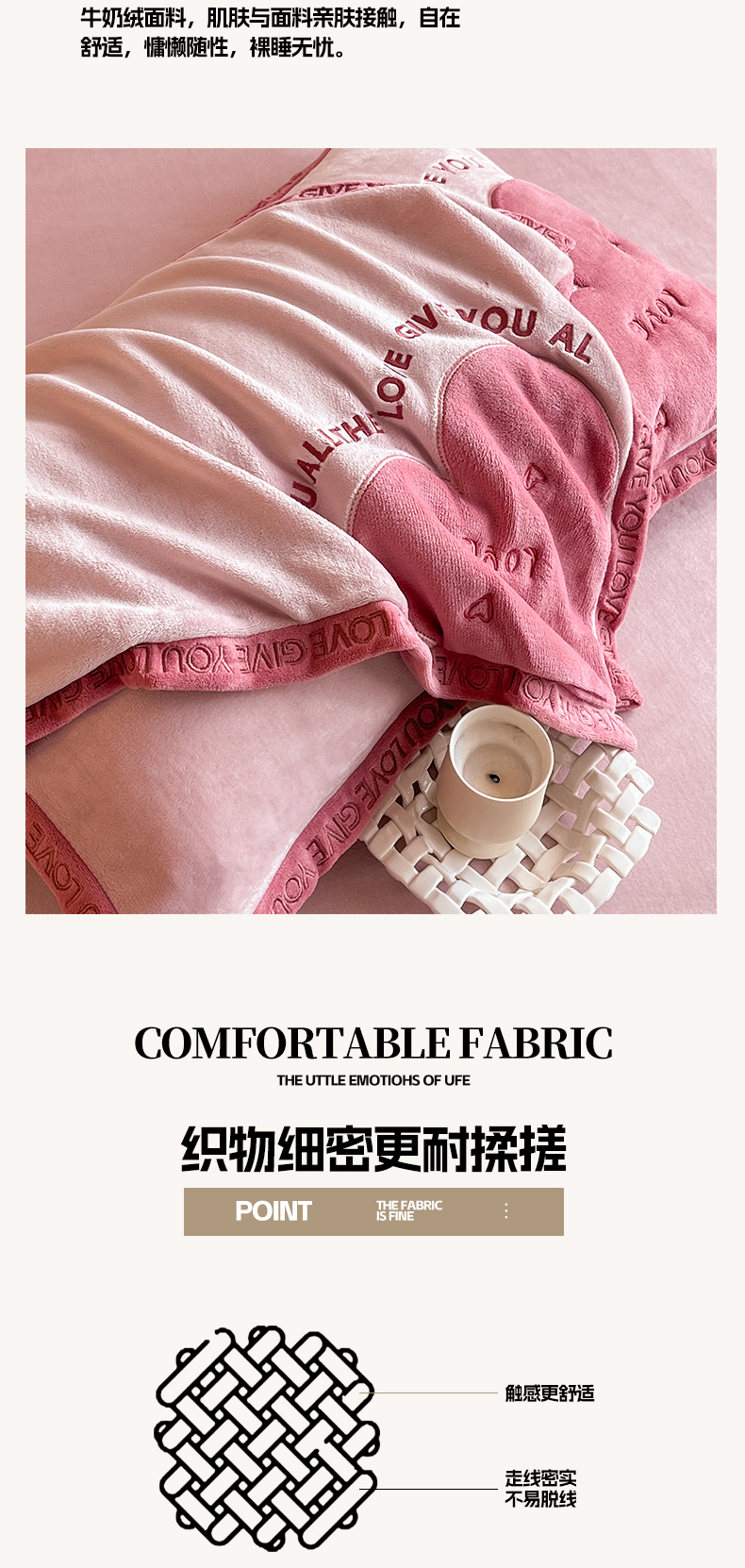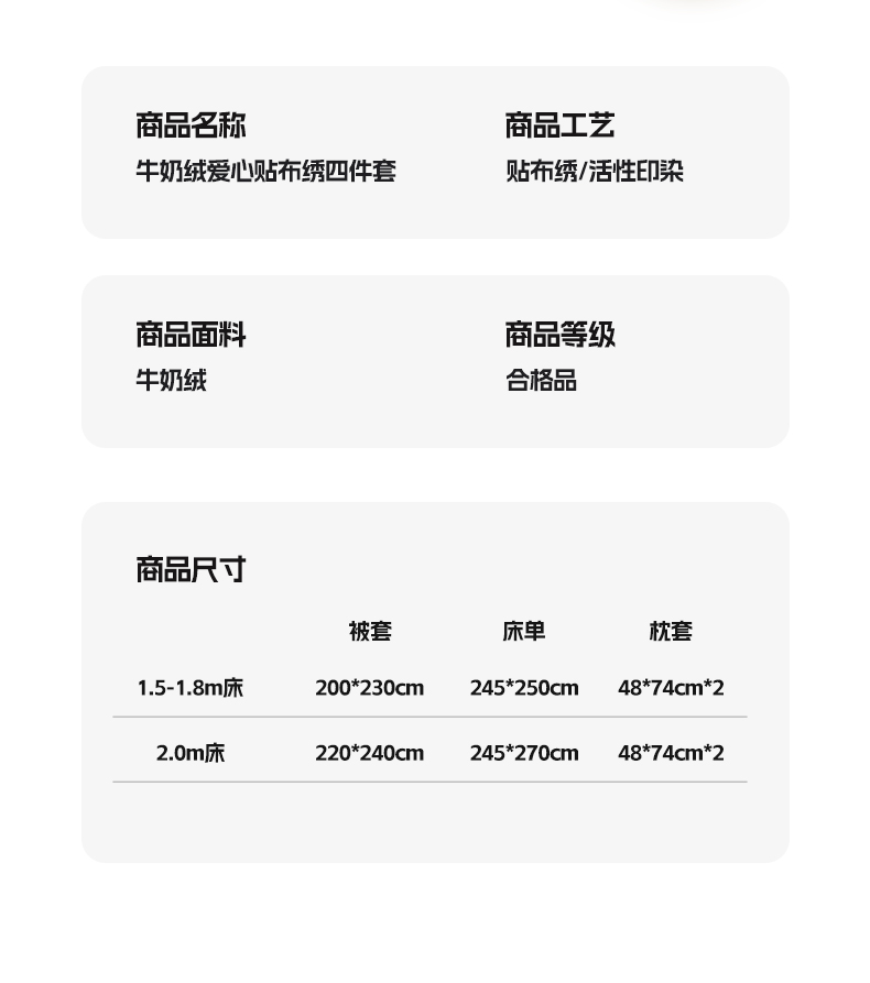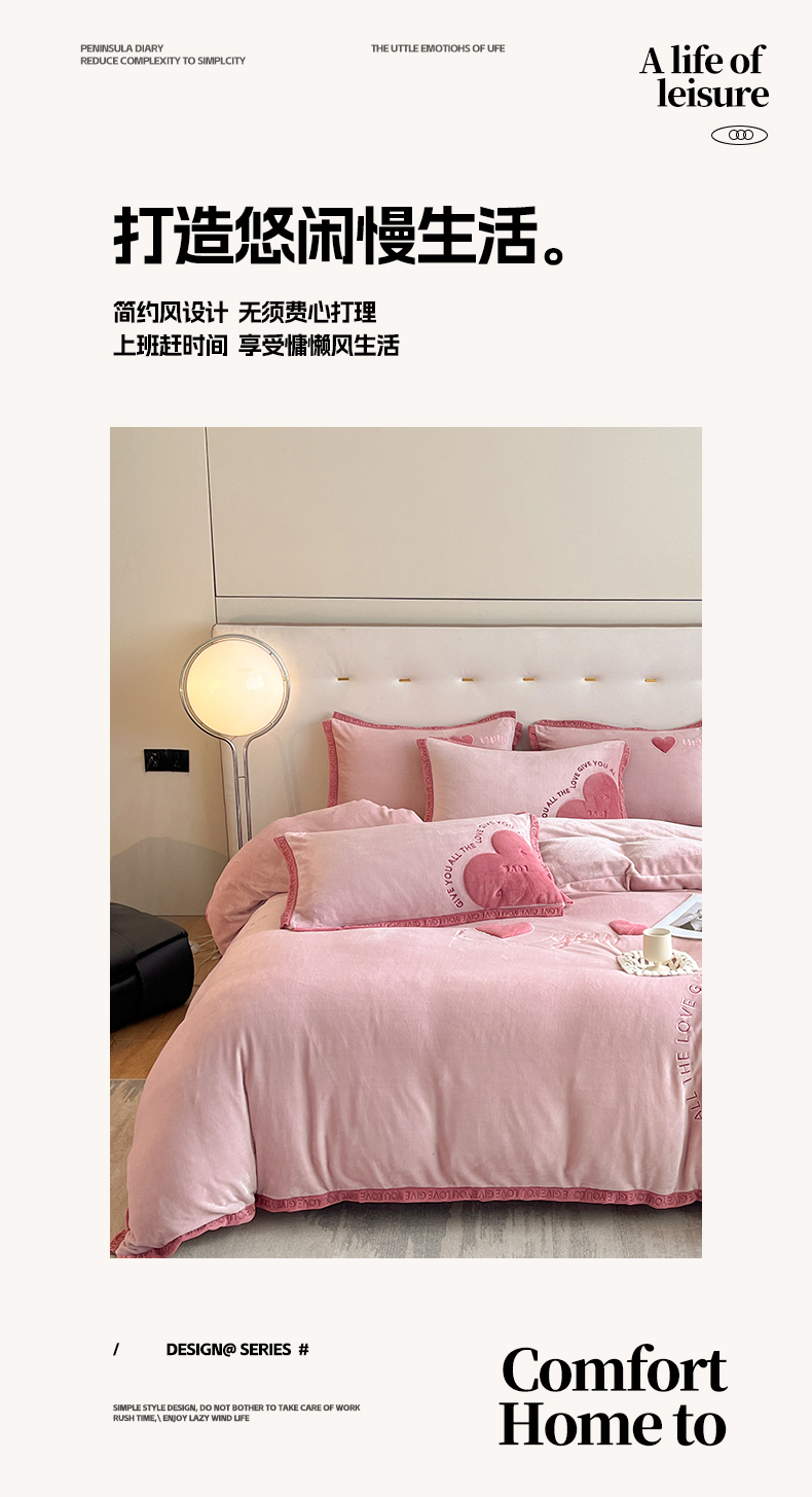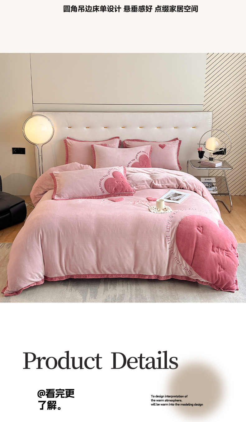 商品名称:博纳家纺 2024新款牛奶绒贴布绣四件套-爱心love baby 浅粉