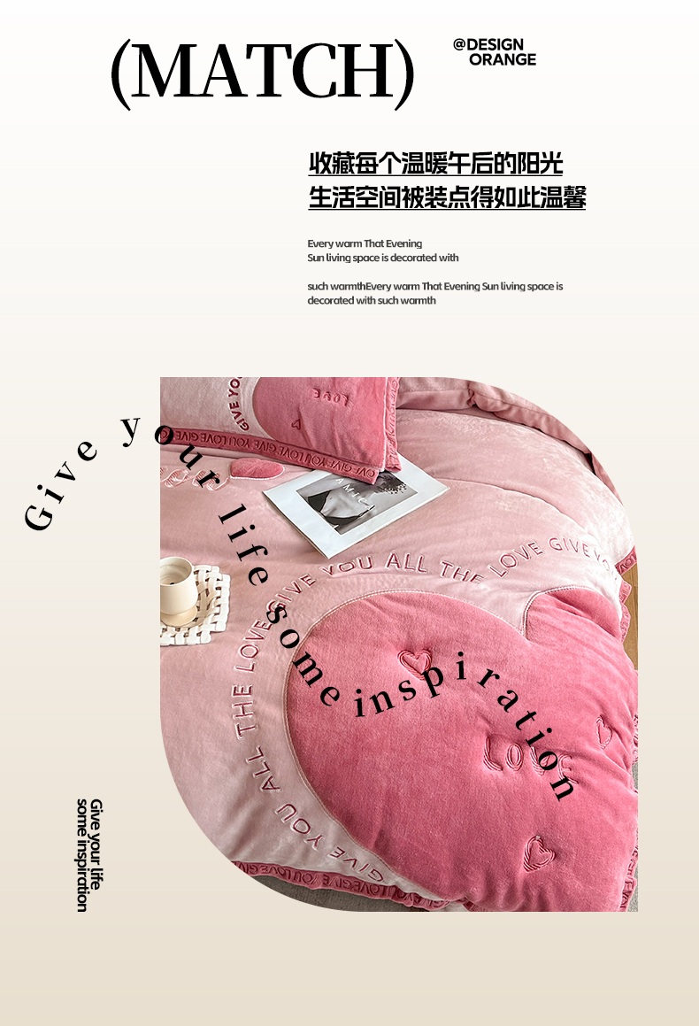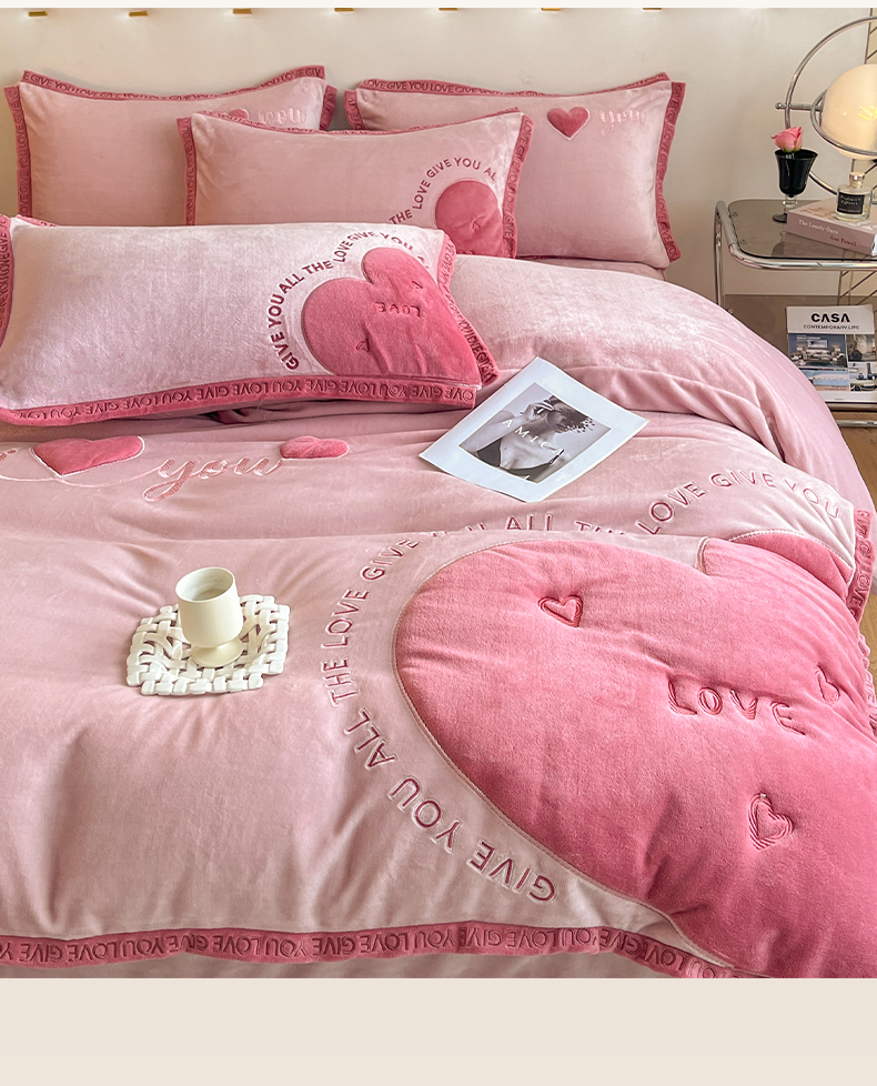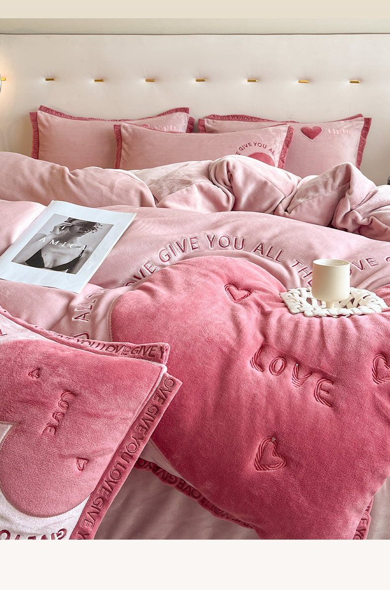 博纳家纺 2024新款牛奶绒贴布绣四件套-爱心love baby 浅粉