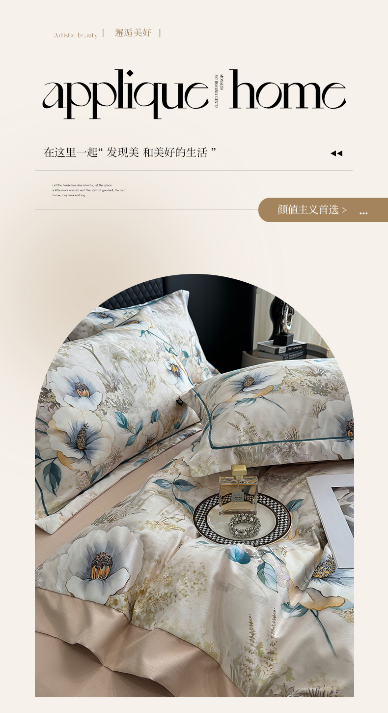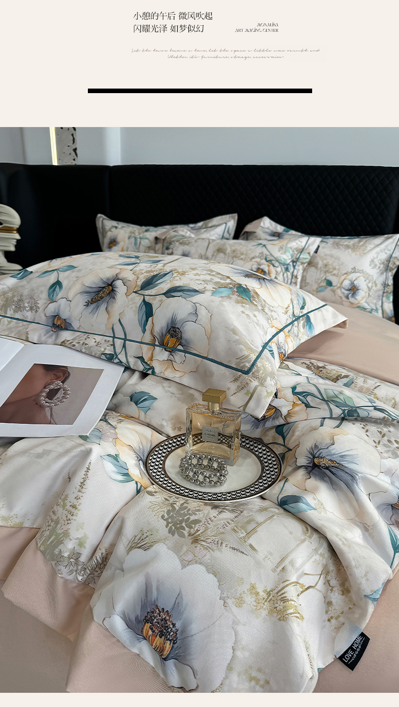 (总)棠颂家纺 2025新款法式锦棉缎数码印花四件套,风月,霓裳